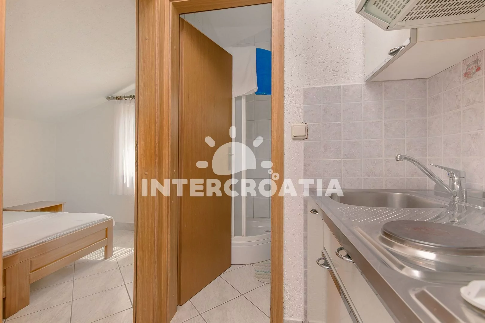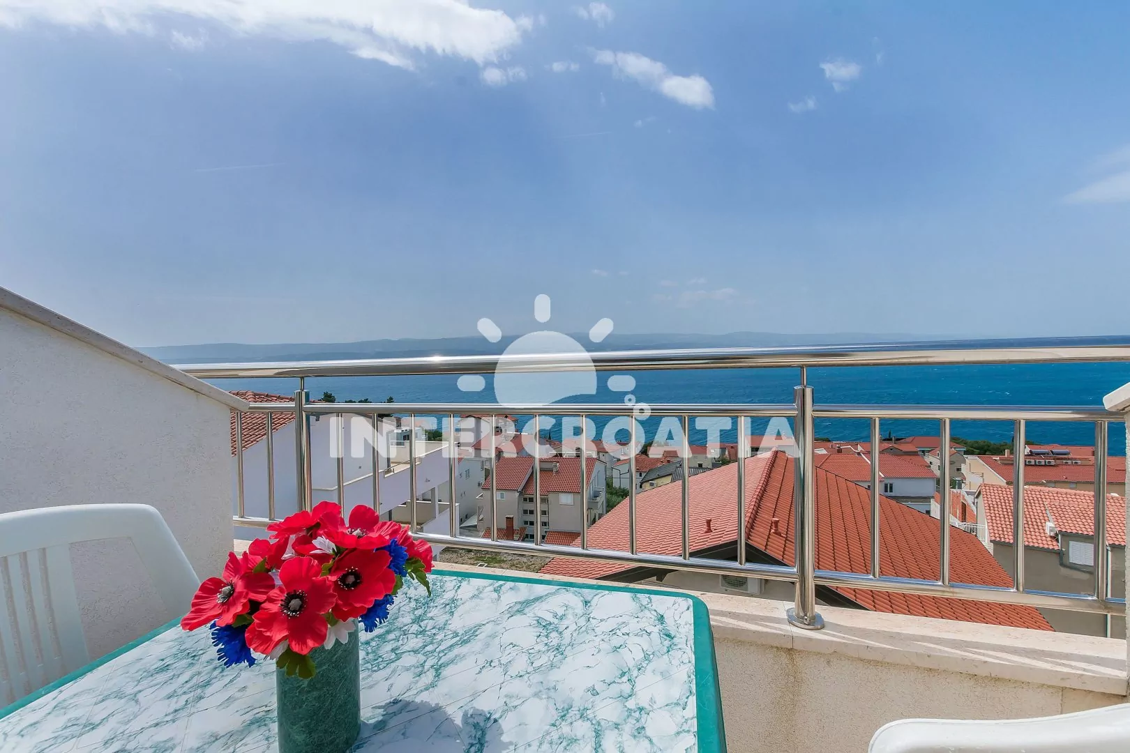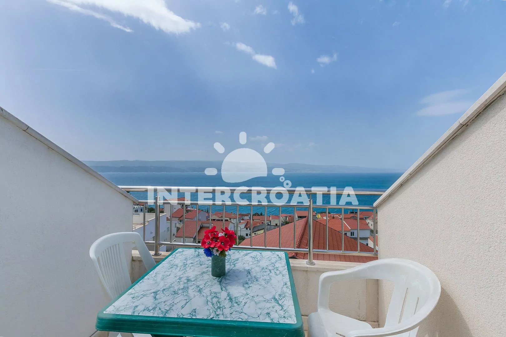 Apartmán (30 m2) s vlastním balkonem a společnou terasou s posezením a jedinečným výhledem na moře. Apartmán se nachází ve 3. patře domu, má 1 ložnici a je vhodný pro 2 až 4 osoby. Obývací pokoj je spojený s kuchyní. Kuchyňská linka je vybavena dvouplotýnkovým vařičem, digestoří, mikrovlnnou troubou, rychlovarnou konvicí, kávovarem, nádobím a lednicí s mrazákem. Obývací pokoj s jídelním stolem, pohovkou (rozložitelná na extra lůžko pro 2 osoby), televizí se satelitním programem, klimatizací a vstupem na balkon. Ložnice s jedním dvoulůžkem. Koupelna se sprchovým koutem, umyvadlem, fénem a wc. Hostům je k dispozici parkování u objektu zdarma.