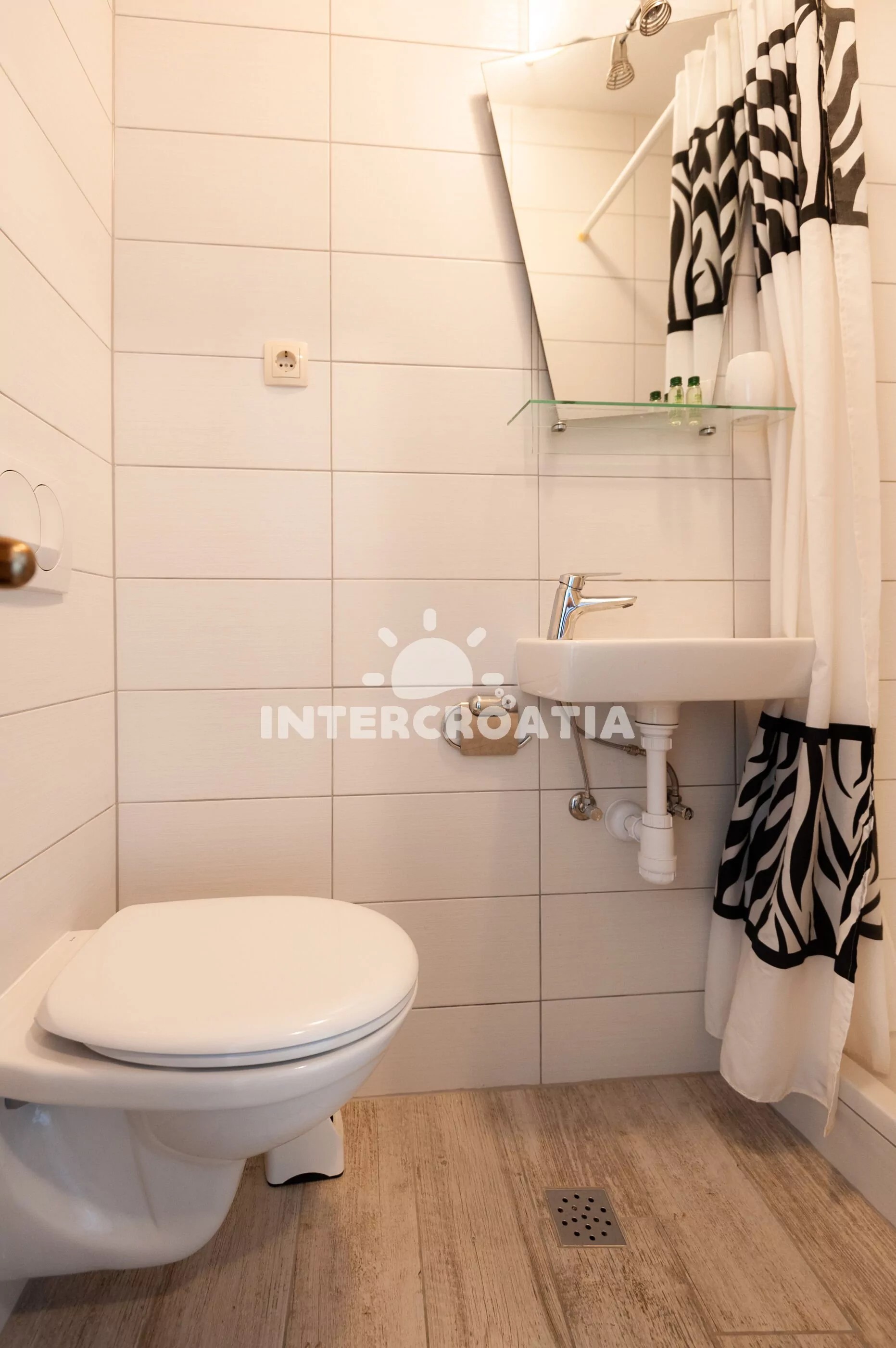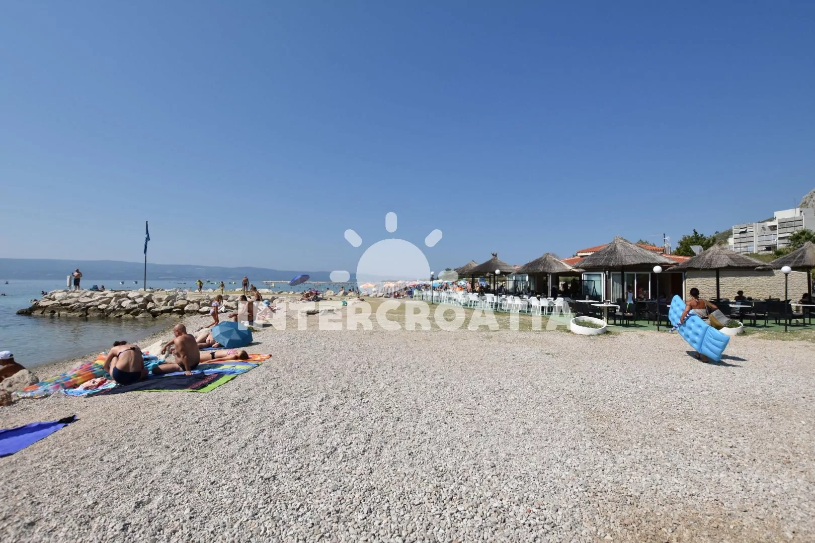 Vzdálenosti: Moře a oblázková pláž 150 m (cesta se schody), moře a oblázková pláž 400 m (cesta bez schodů), písečná pláž 700 m, centrum 700 m, obchod 100 m, pošta 600 m, lékárna 600 m, zdravotní středisko 200 m, restaurace, bar, směnárna, banka a muzeum 600 m, půjčovna kol 1,7 km, půjčovna motorových člunů 1 km, potápěčský klub 1 km, tenisové kurty 1,7 km, minigolf 7 km, čerpací stanice 1,7 km, veřejná doprava 400 m, přístav 600 km, trajekt 25 km (Split), letiště 45 km (Split).