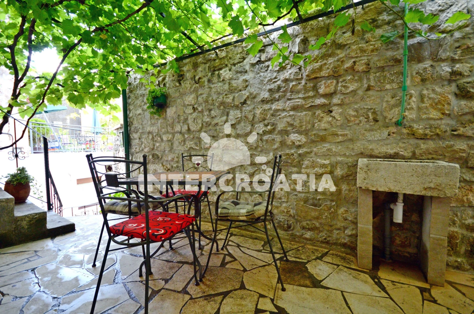 Historické město Omiš ve Střední Dalmácii jen 26 km od centra Splitu. Dům se nachází 180 m pěší chůzí od průzračného moře a písčité pláže.