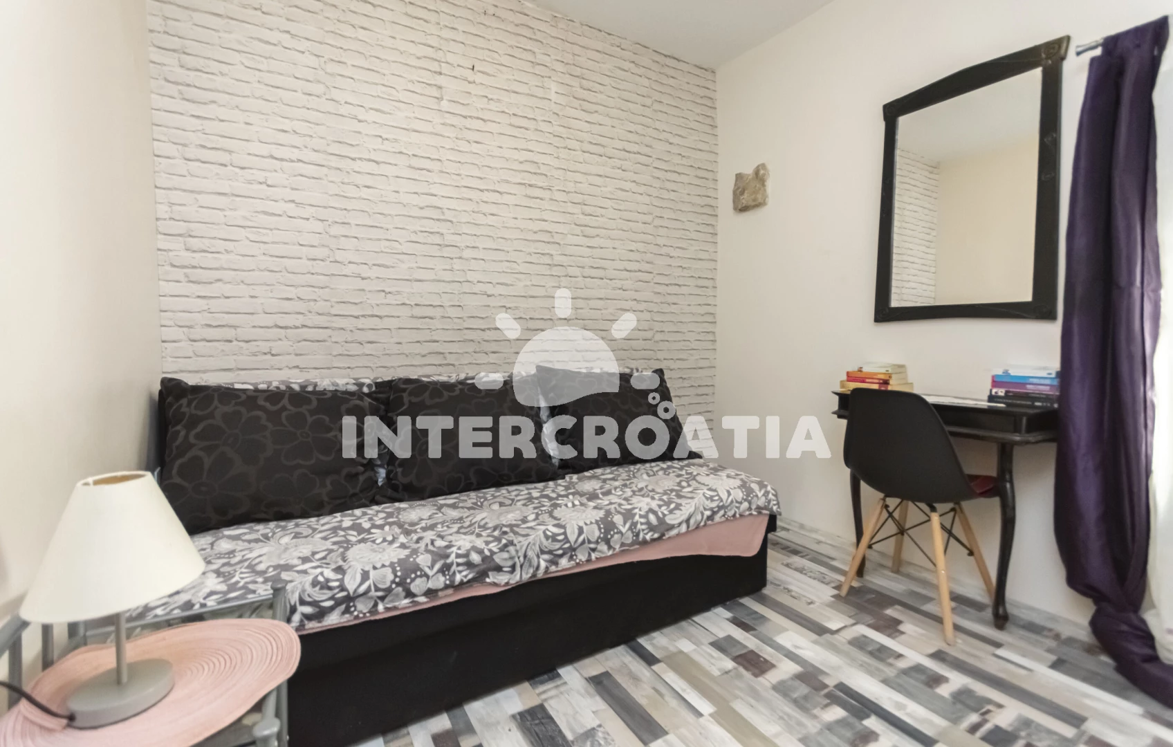 Apartmán (30 m2) s výhledem na staré město se nachází v 1. patře domu. Apartmán má 1 ložnici a je vhodný pro až 4 osoby. Obývací pokoj je spojený s kuchyní. Kuchyňská linka je vybavena dvouplotýnkovým vařičem, mikrovlnnou troubou, rychlovarnou konvicí, nádobím a lednicí s mrazákem. Obývací pokoj s jídelním stolem, pohovkou (rozložitelná na extra lůžko pro 1 osobu), televizí a klimatizací. Ložnice s dvoulůžkem a jedním jednolůžkem. Koupelna se sprchovým koutem, umyvadlem, fénem a wc.