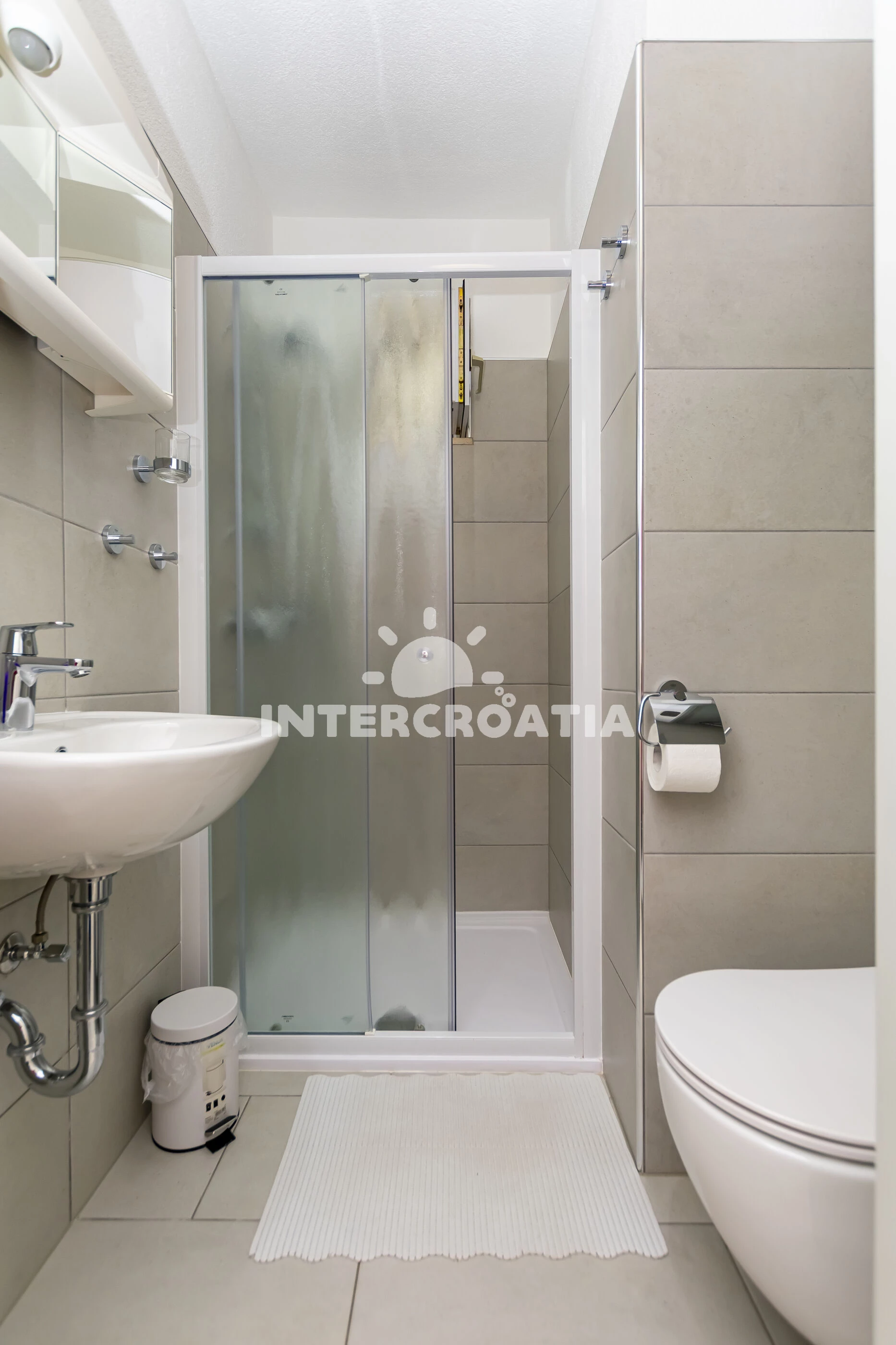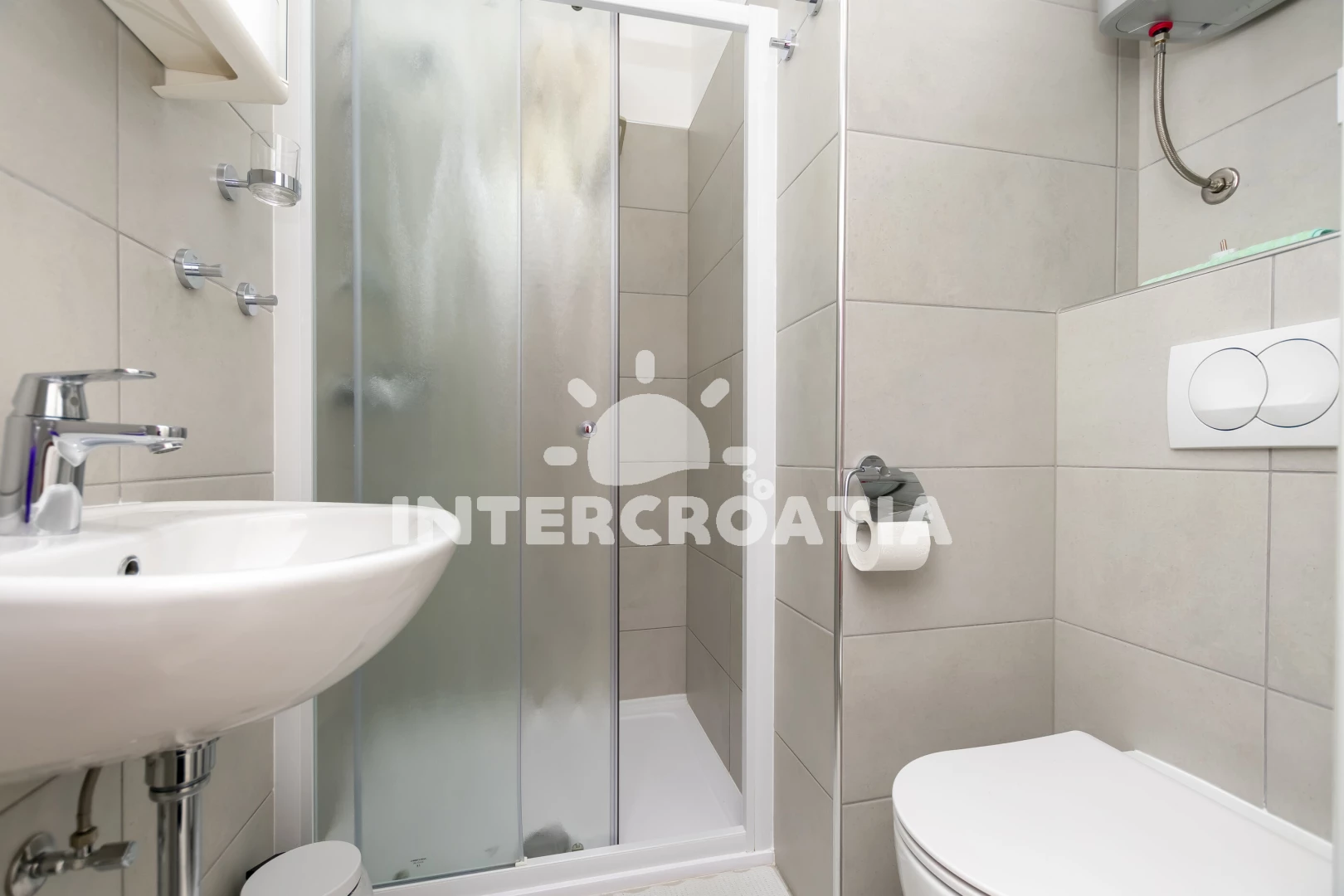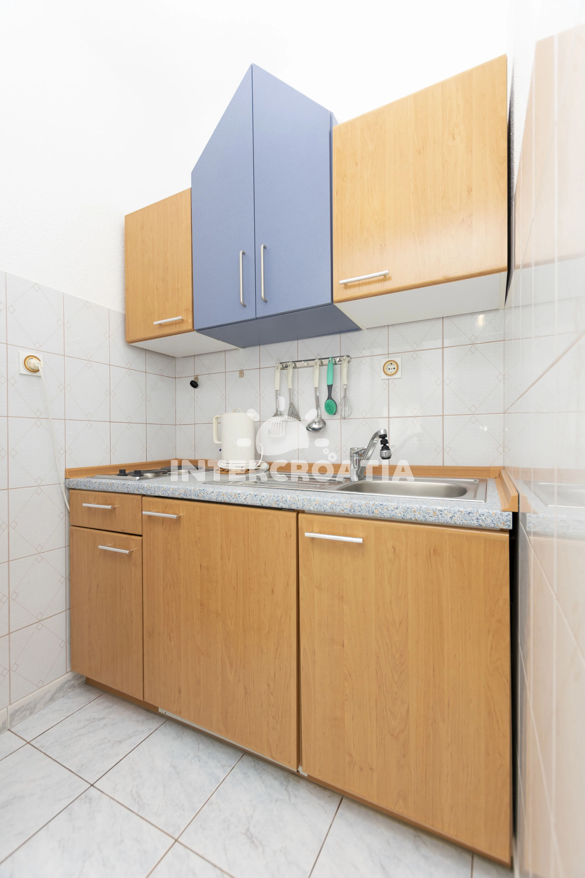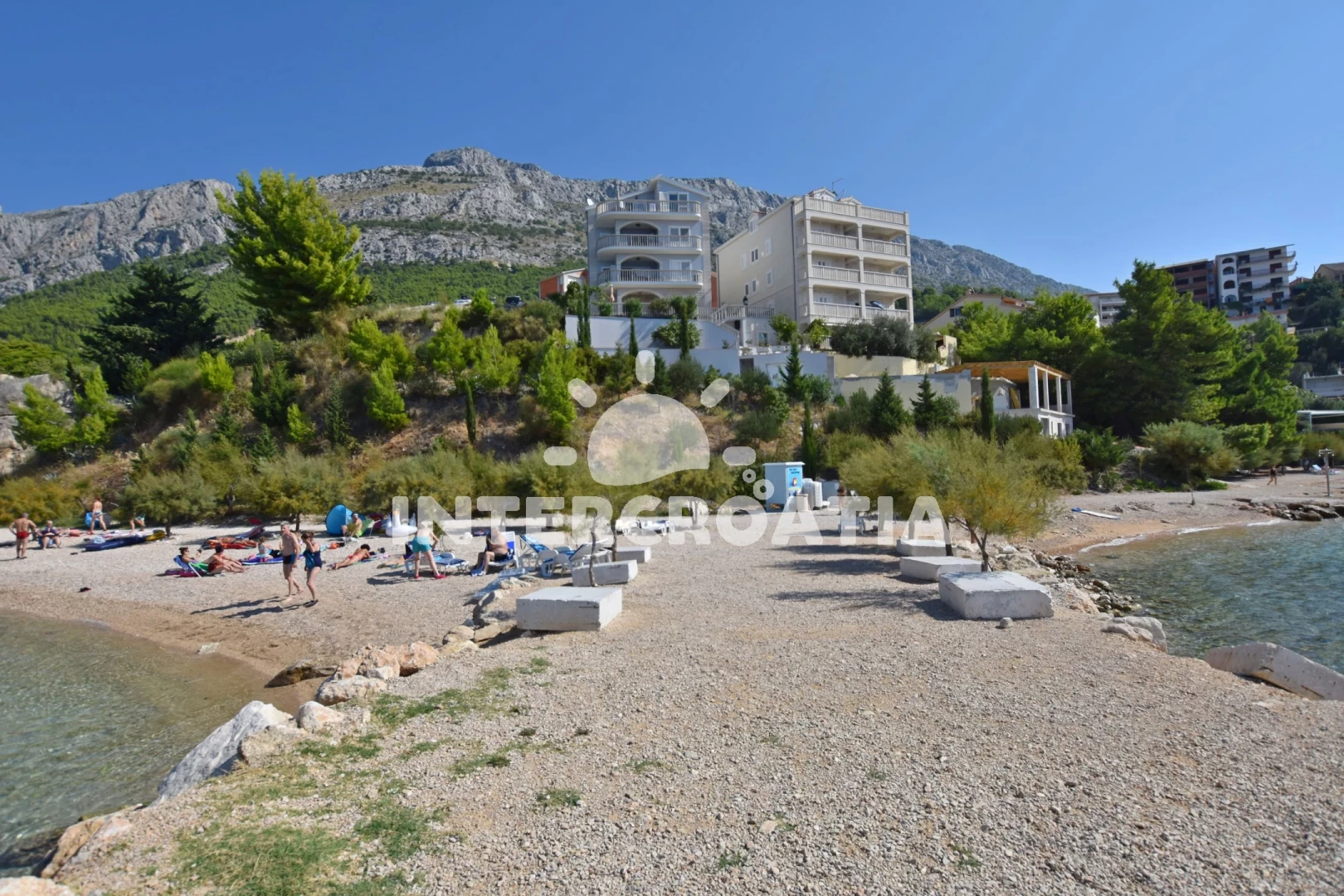 Vzdálenosti: Moře a pláž 220 m, obchod s potravinami, restaurace a bar 100 m, veřejná doprava a lékárna 300 m, centrum města 1,5 km, půjčovna motorových člunů 500 m, ambulance 2,3 km, banka a pošta 3,5 km, směnárna 3 km, čerpací stanice 4 km, diskotéka 30 km, trajekt (Split) 30 km, letiště (Split) 45 km.