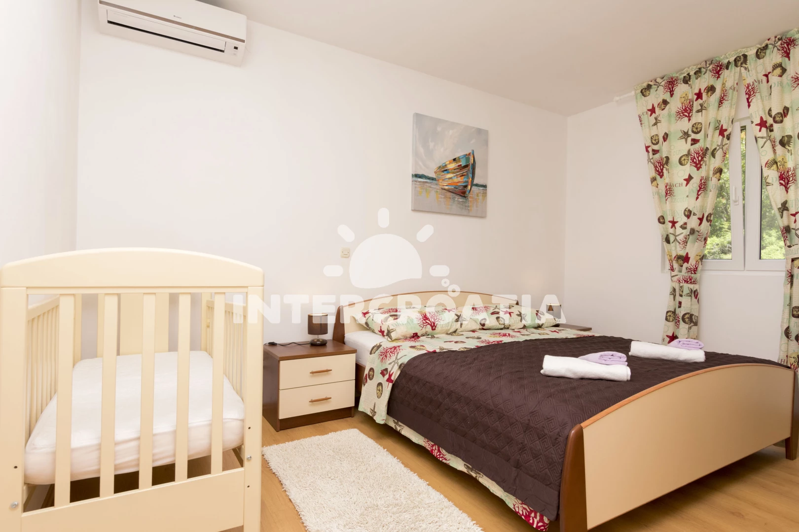 Szobák, ágyak, konyha. Közel az óváros és a városi strand. - Egy légkondi kevés ekkora apartmanban.