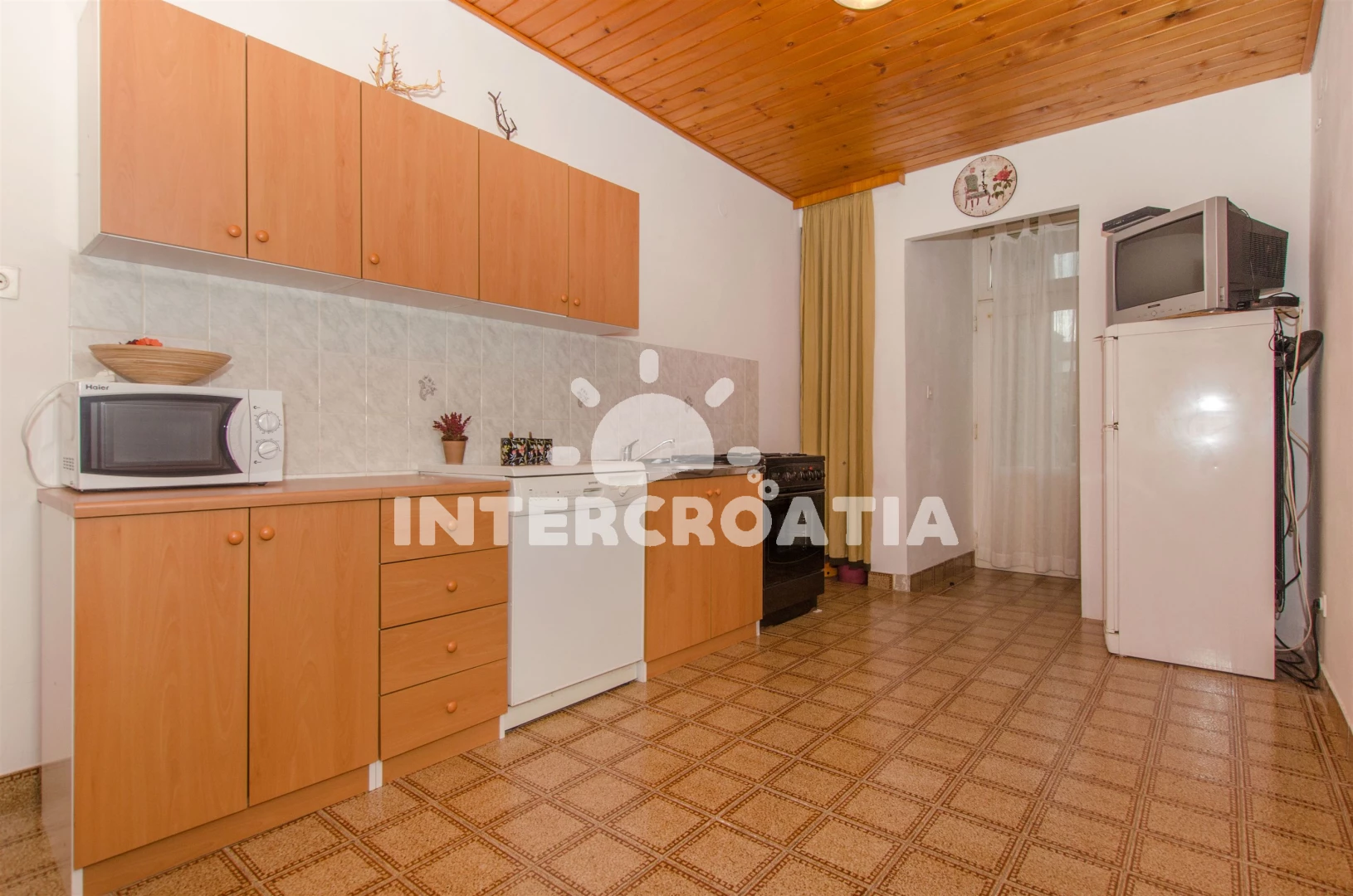 Vzdálenosti: Moře 200 m, bar 2 m, pláž 200 m (písek), restaurace 2 m, centrum 10 m, lékárna 40 m, směnárna 40 m, supermarket 50 m, pošta 50 m, muzeum 80 m, půjčovna kol 80 m, banka 150 m, veřejná doprava 200 m, půjčovna motorových člunů 200 m, tenisové kurty 600 m, ambulance 600 m, potápění 600 m, čerpací stanice 800 m, diskotéka 20,0 km, trajekt (Split) 25 km, letiště (Split) 45 km,