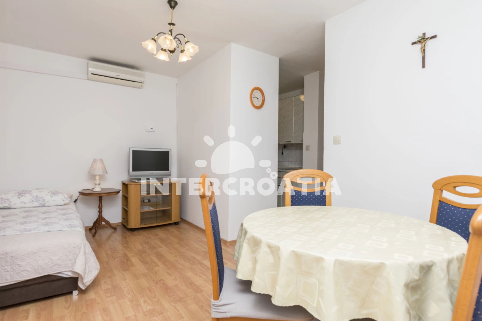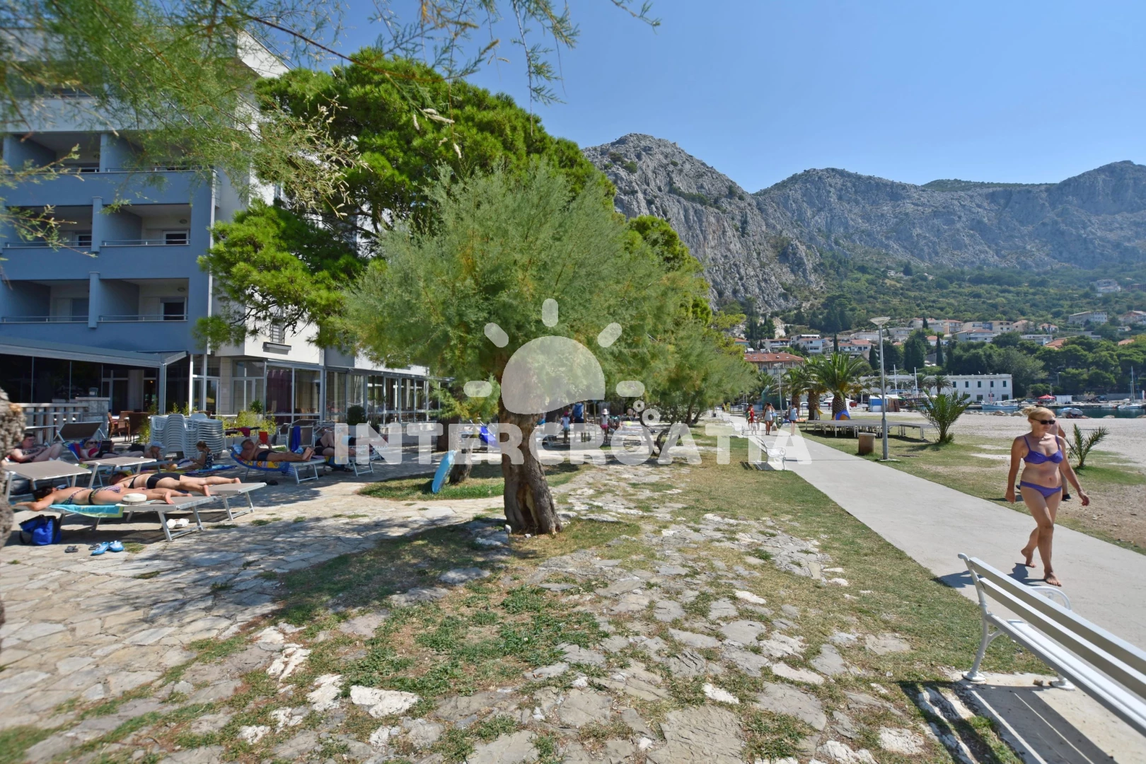 Vzdálenosti: Moře 600 m, pláž 700 m (písek), veřejná doprava 25 m, bar 50 m, supermarket 60 m, banka 60 m, směnárna 60 m, restaurace 100 m, čerpací stanice 250 m, půjčovna motorových člunů 350 m, půjčovna kol 350 m, lékárna 450 m, centrum 500 m, pošta 500 m, tenisové kurty 550 m, muzeum 550 m, marina 600 m, kotviště pro čluny 600 m, potápění 600 m, ambulance 1,2 km, mini golf 7 km, diskotéka 20 km, trajekt (Split) 25 km, letiště (Split) 45 km,