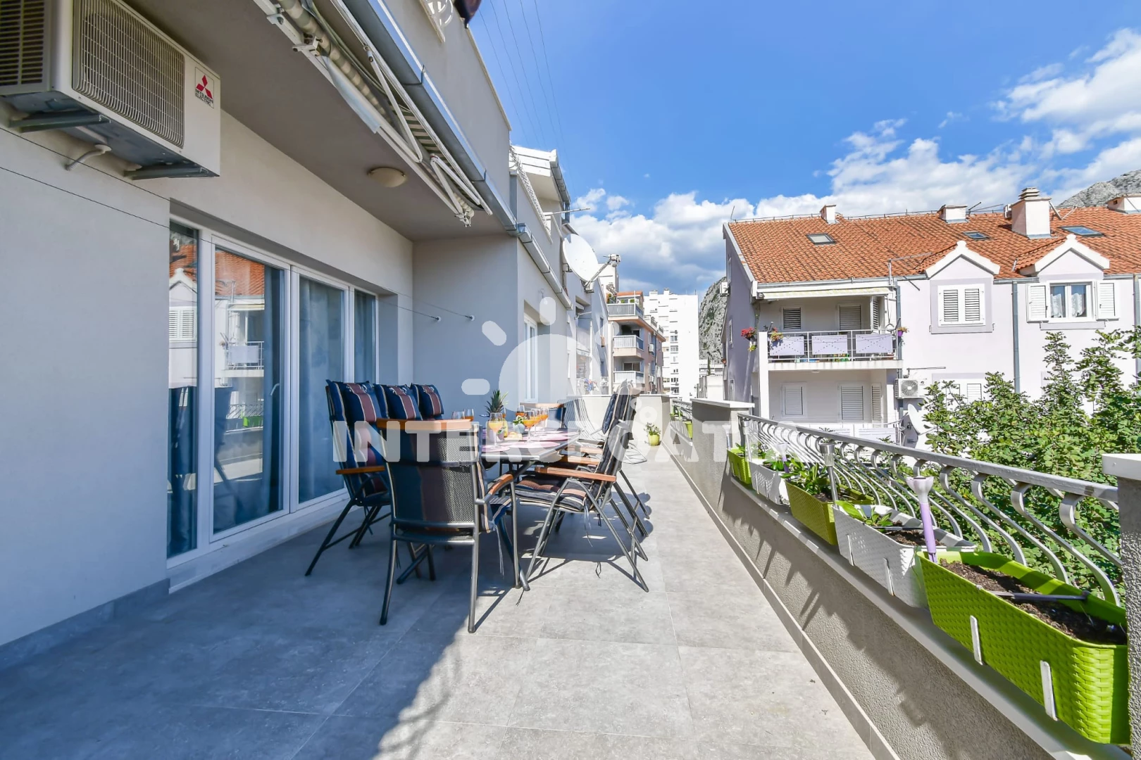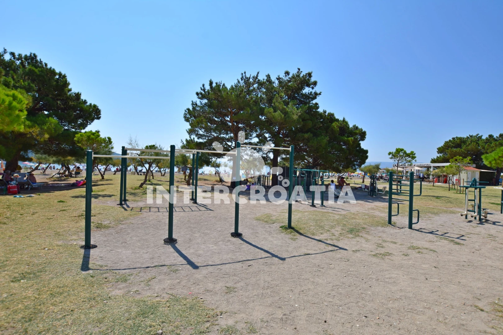 Vzdálenosti: Moře 500 m, pláž 600 m (písek), supermarket 50 m, bar 50 m, směnárna 100 m, veřejná doprava 100 m, banka 100 m, restaurace 150 m, půjčovna kol 250 m, čerpací stanice 250 m, kotviště pro čluny 450 m, marina 450 m, potápění 450 m, půjčovna motorových člunů 450 m, lékárna 500 m, tenisové kurty 500 m, centrum 550 m, pošta 600 m, muzeum 650 m, ambulance 1,3 km, mini golf 7 km, diskotéka 20 km, trajekt (Split) 25 km, letiště (Split) 45 km,