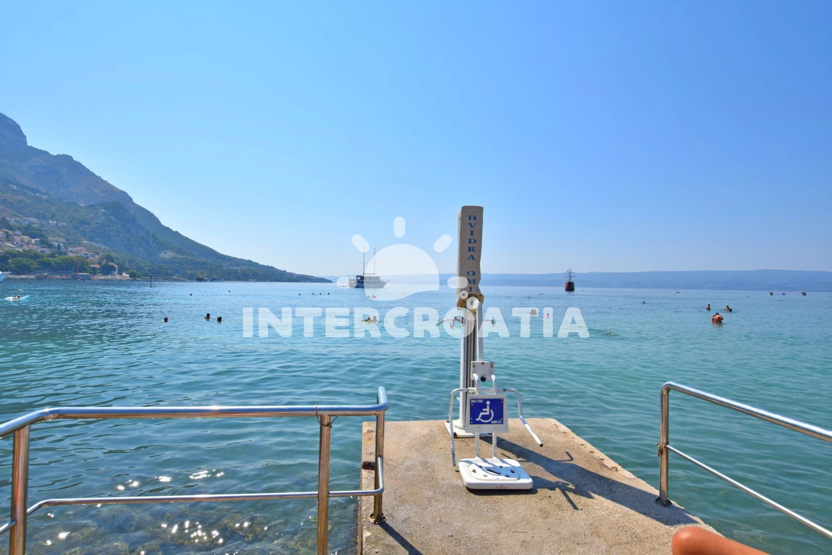 Vzdálenosti: Moře 150 m, pláž 150 m (písek), centrum 10 m, lékárna 50 m, směnárna 50 m, restaurace 50 m, bar 50 m, supermarket 50 m, pošta 100 m, muzeum 100 m, banka 150 m, půjčovna motorových člunů 200 m, marina 200 m, kotviště pro čluny 200 m, veřejná doprava 250 m, potápění 350 m, čerpací stanice 500 m, ambulance 500 m, půjčovna kol 500 m, tenisové kurty 600 m, mini golf 7 km, diskotéka 20 km, trajekt (Split) 25 km, letiště (Split) 45 km,