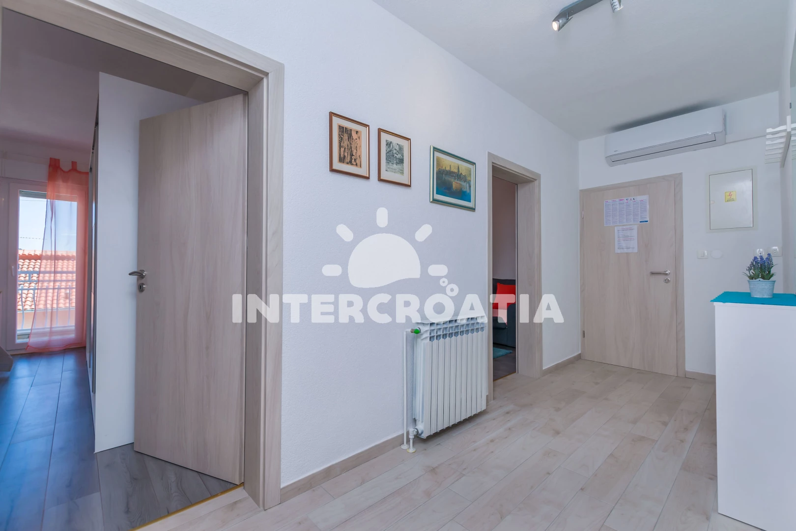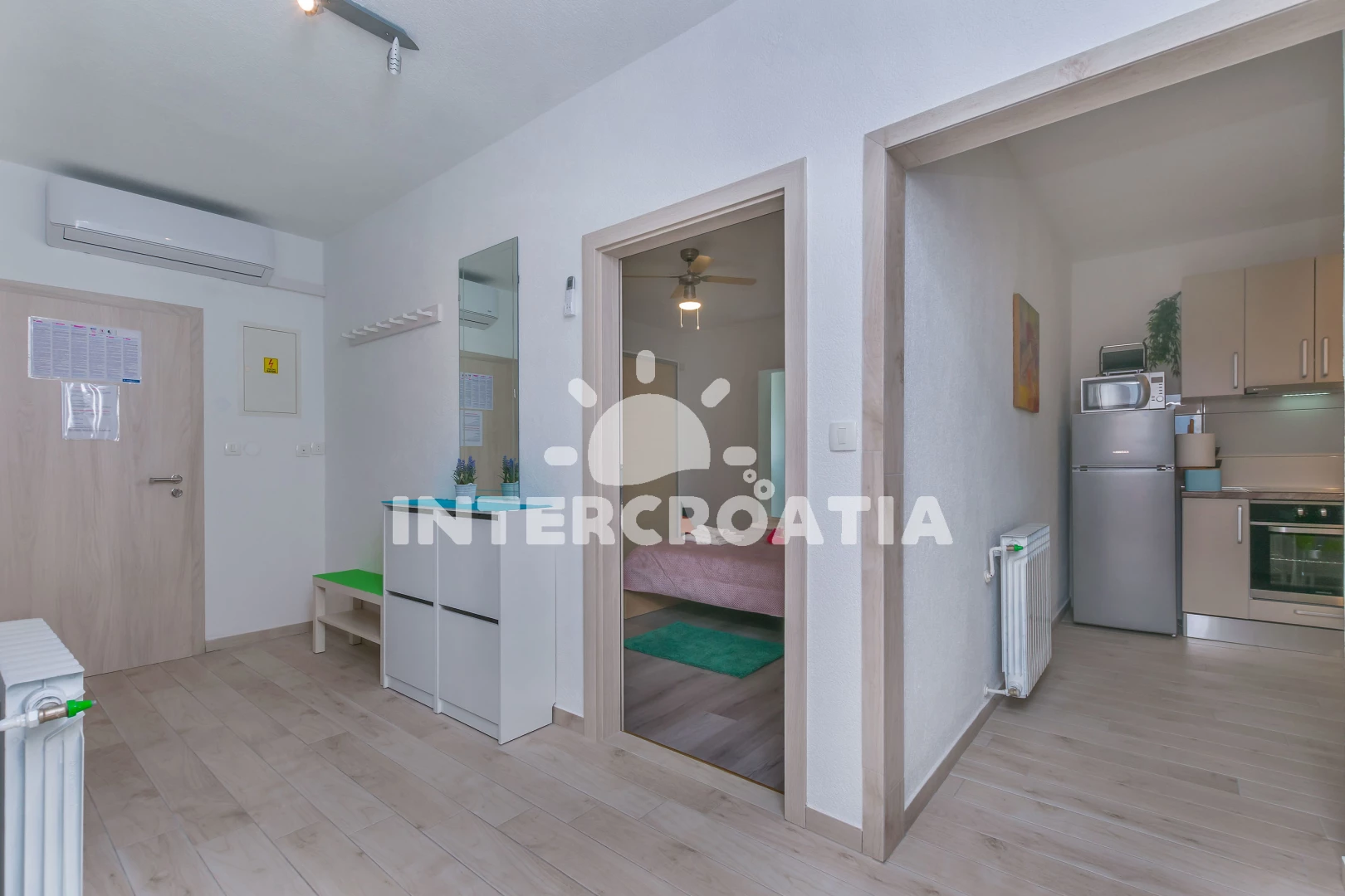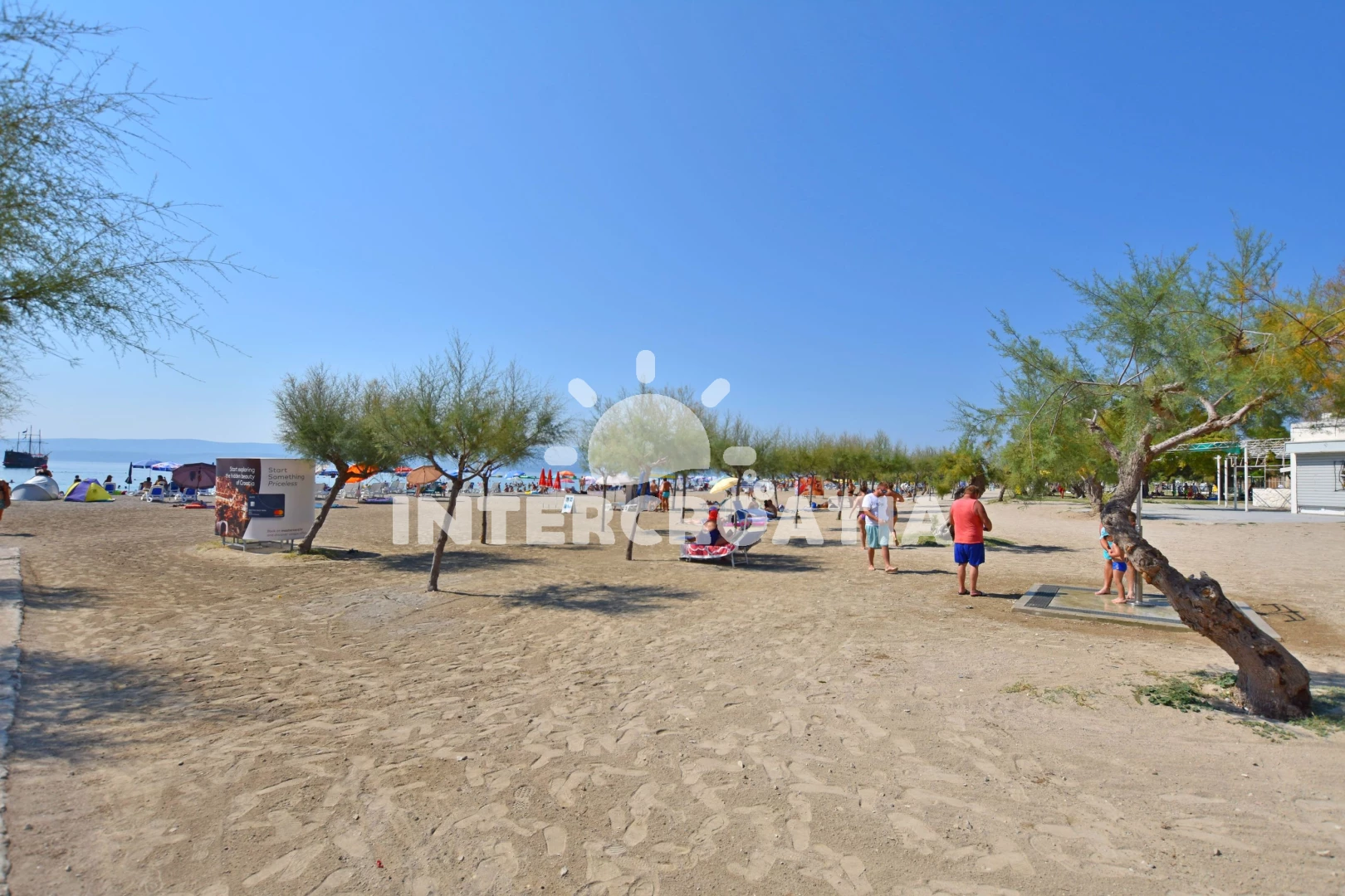 Vzdálenosti: Moře 500 m, pláž 850 m (písek), supermarket 250 m, směnárna 250 m, veřejná doprava 250 m, bar 250 m, banka 250 m, čerpací stanice 350 m, restaurace 400 m, tenisové kurty 400 m, lékárna 550 m, centrum 600 m, kotviště pro čluny 800 m, muzeum 800 m, půjčovna motorových člunů 800 m, potápění 800 m, pošta 800 m, ambulance 1,3 km, mini golf 7 km, trajekt (Split) 25 km, letiště (Split) 45 km,