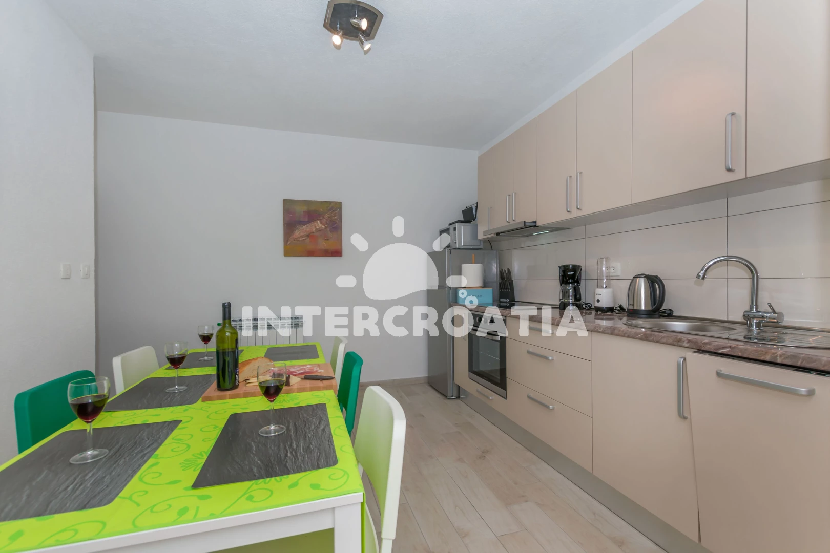 The flat is spacious, clean, modern and new. It has its own barbecue and terrace. The owners are very friendly and helpful, and discrete. They kindly provided the wood for the barbecue, the washing machine tablets, everything needed was already there. The kitchen has everything needed for 4 persons, way above other places we''ve been to in Croatia for similar amounts of money. We''ve traveled with the family to various accommodations in Croatia for 7 years now, this is by far the best one we''ve been in.