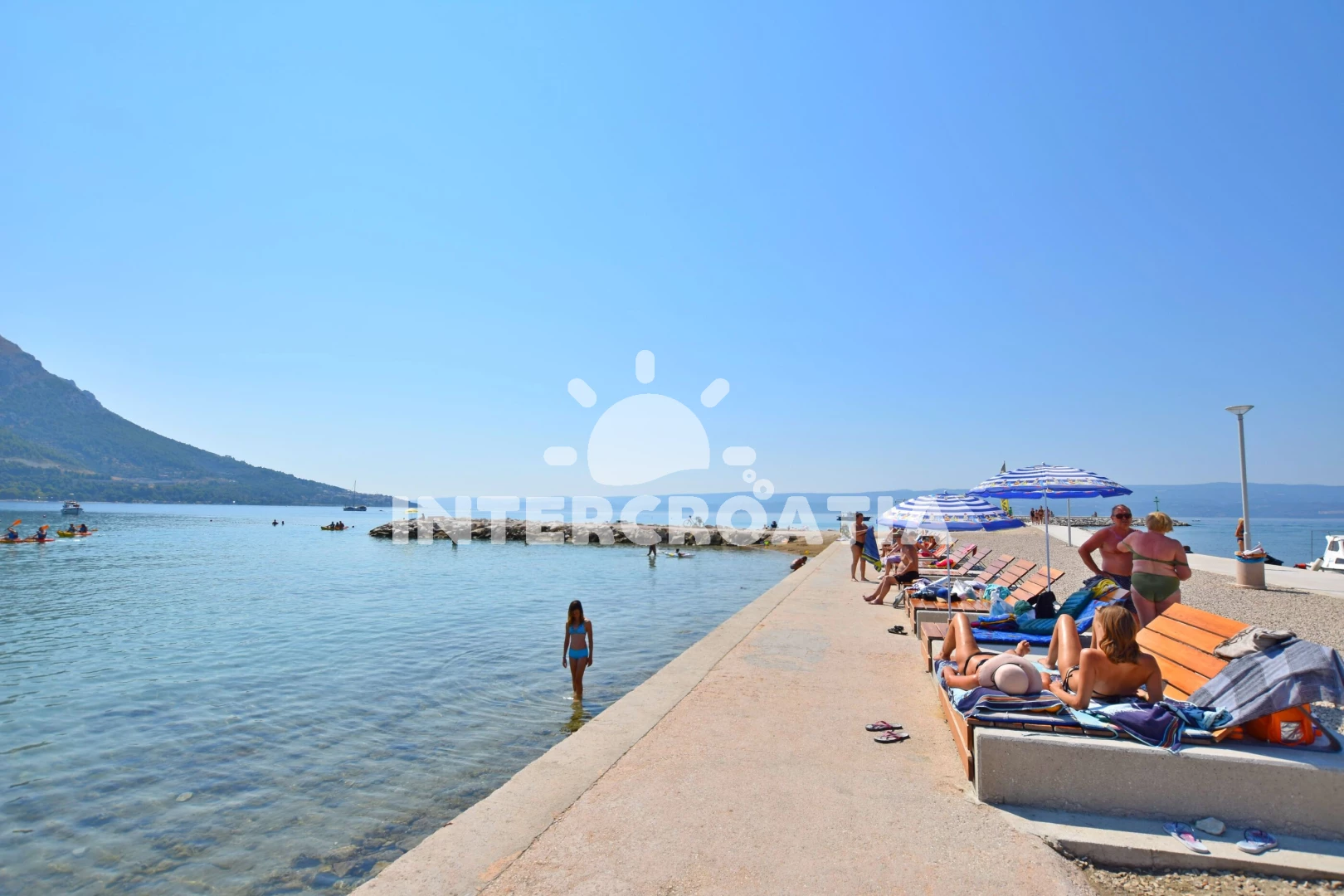 Vzdálenosti: Moře 500 m, pláž 700 m (písek), veřejná doprava 10 m, supermarket 30 m, bar 50 m, směnárna 80 m, banka 80 m, restaurace 200 m, čerpací stanice 270 m, půjčovna motorových člunů 400 m, lékárna 400 m, půjčovna kol 500 m, tenisové kurty 550 m, muzeum 600 m, pošta 600 m, centrum 650 m, potápění 700 m, ambulance 1,3 km, mini golf 7,5 km, diskotéka 25 km, trajekt (Split) 25 km, letiště (Split) 45 km,