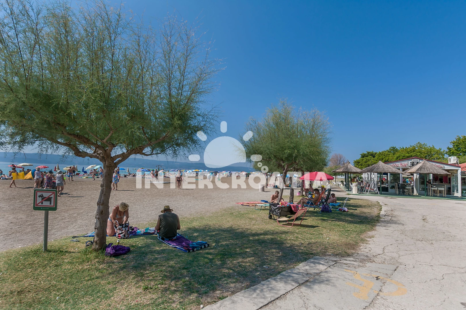 Vzdálenosti: Moře 500 m, pláž 800 m (písek), supermarket 100 m, bar 150 m, banka 200 m, lékárna 250 m, restaurace 300 m, pošta 300 m, půjčovna motorových člunů 300 m, veřejná doprava 300 m, směnárna 400 m, centrum 400 m, čerpací stanice 500 m, potápění 800 m, ambulance 1 km, trajekt (Split) 30 km, letiště (Split) 45 km,