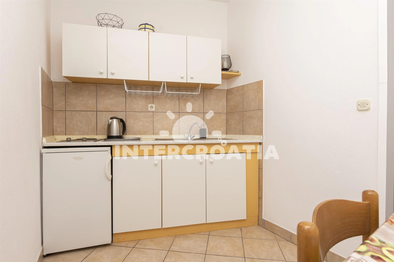 Apartmán typu studio (25 m2) s balkonem, a výhledem na moře. Nachází se ve 2. patře objektu. Kuchyňská linka je vybavena varnou deskou, rychlovarnou konvicí, nádobím, lednicí. K dispozici dvoulůžko,…