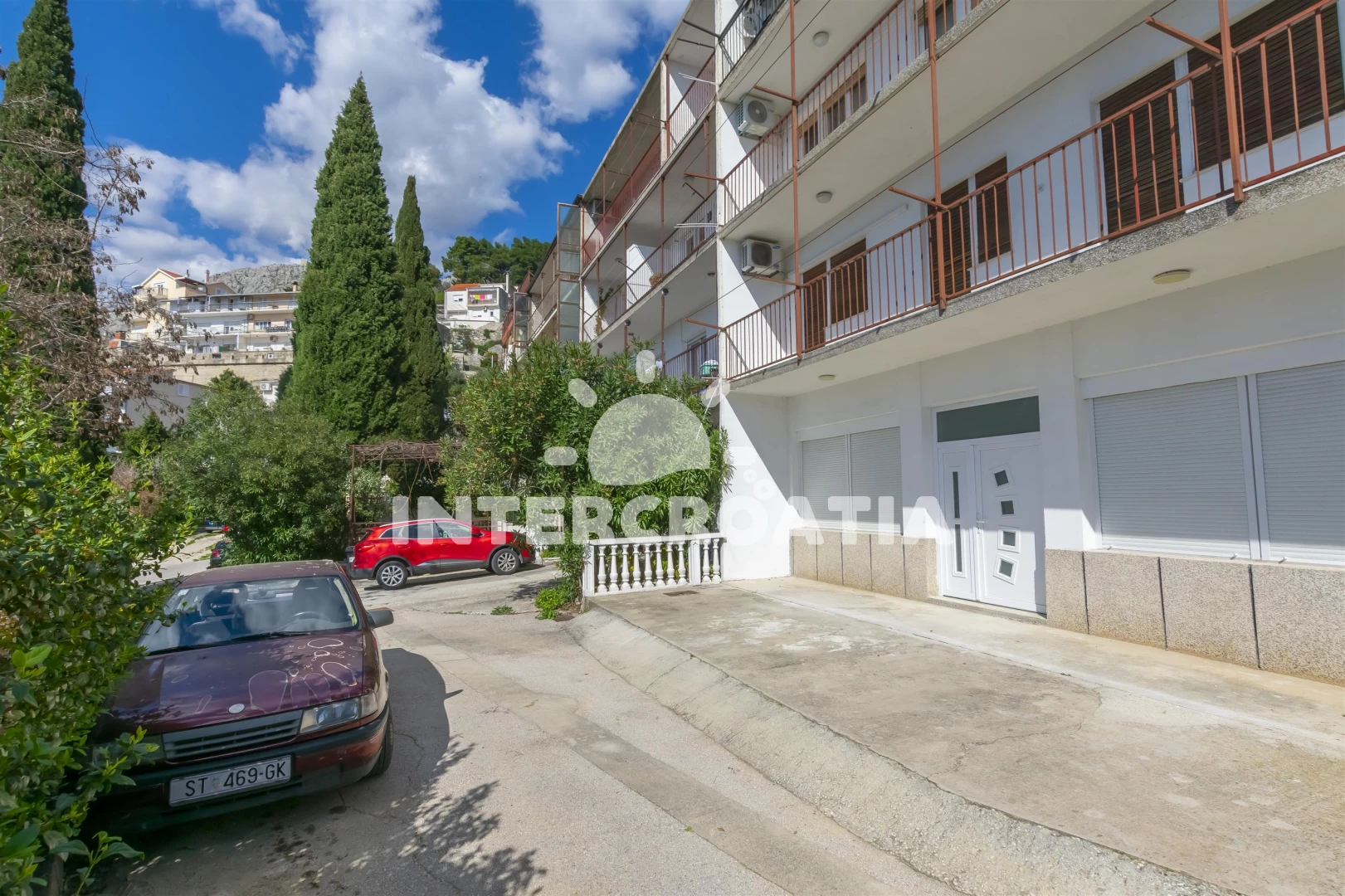 Vzdálenosti: Moře 70 m, pláž 90 m (oblázky), bar 90 m, restaurace 90 m, půjčovna motorových člunů 90 m, ambulance 200 m, supermarket 300 m, veřejná doprava 850 m, banka 900 m, muzeum 900 m, centrum 900 m, směnárna 900 m, lékárna 900 m, pošta 900 m, potápění 1 km, čerpací stanice 1,9 km, půjčovna kol 1,9 km, tenisové kurty 2,1 km, trajekt (Split) 25 km, diskotéka 25 km, letiště (Split) 40 km,
