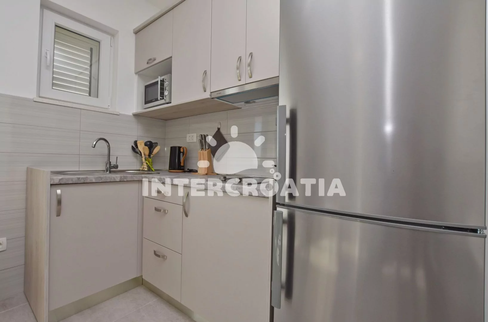 Comfortable, elegant new rooms, equipped with everything (including air conditioning), the apartment house has its own sundeck in a small bay, which can be reached by stairs. Sunbeds and umbrellas are also available to residents. And the owner is very nice.Thank you for everything!