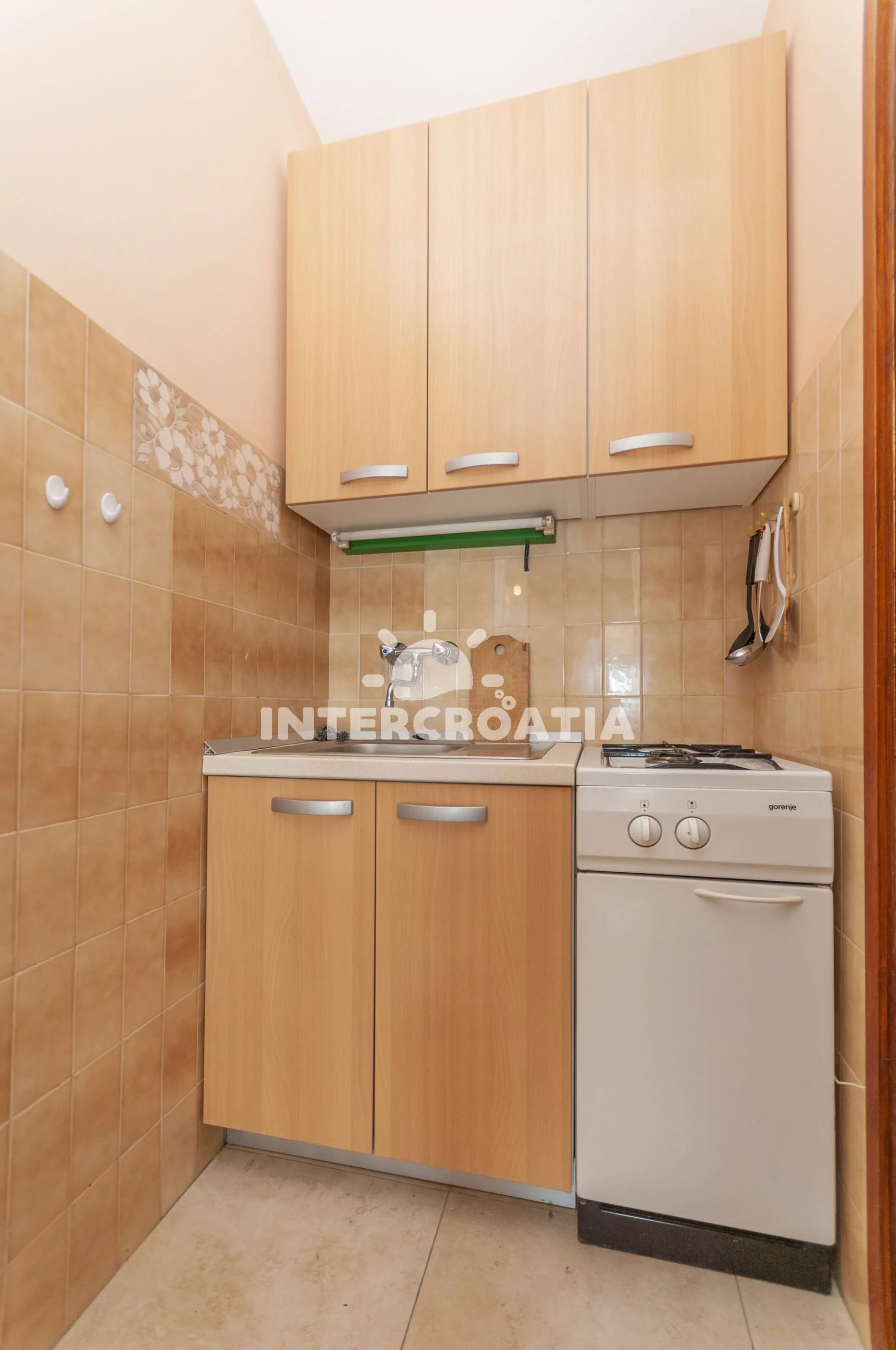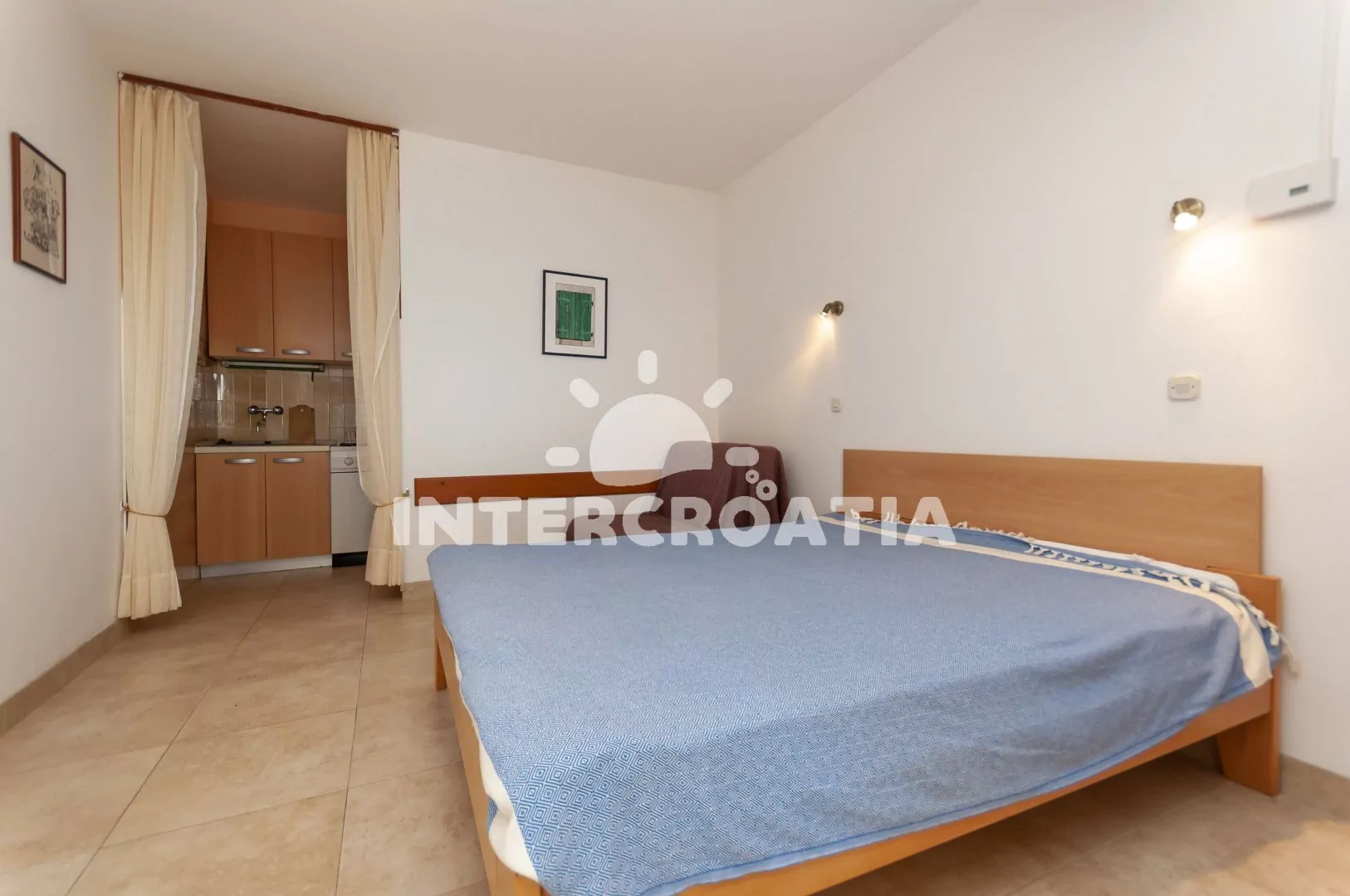 Apartmán (20 m2) s terasou, posezením a výhledem na moře se nachází v přízemí domu. Apartmán je vhodný pro 2 až 3 osoby. Obývací místnost je spojena s kuchyní. Kuchyňská linka je vybavena…