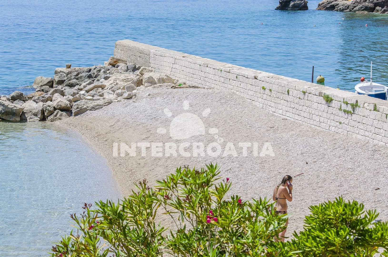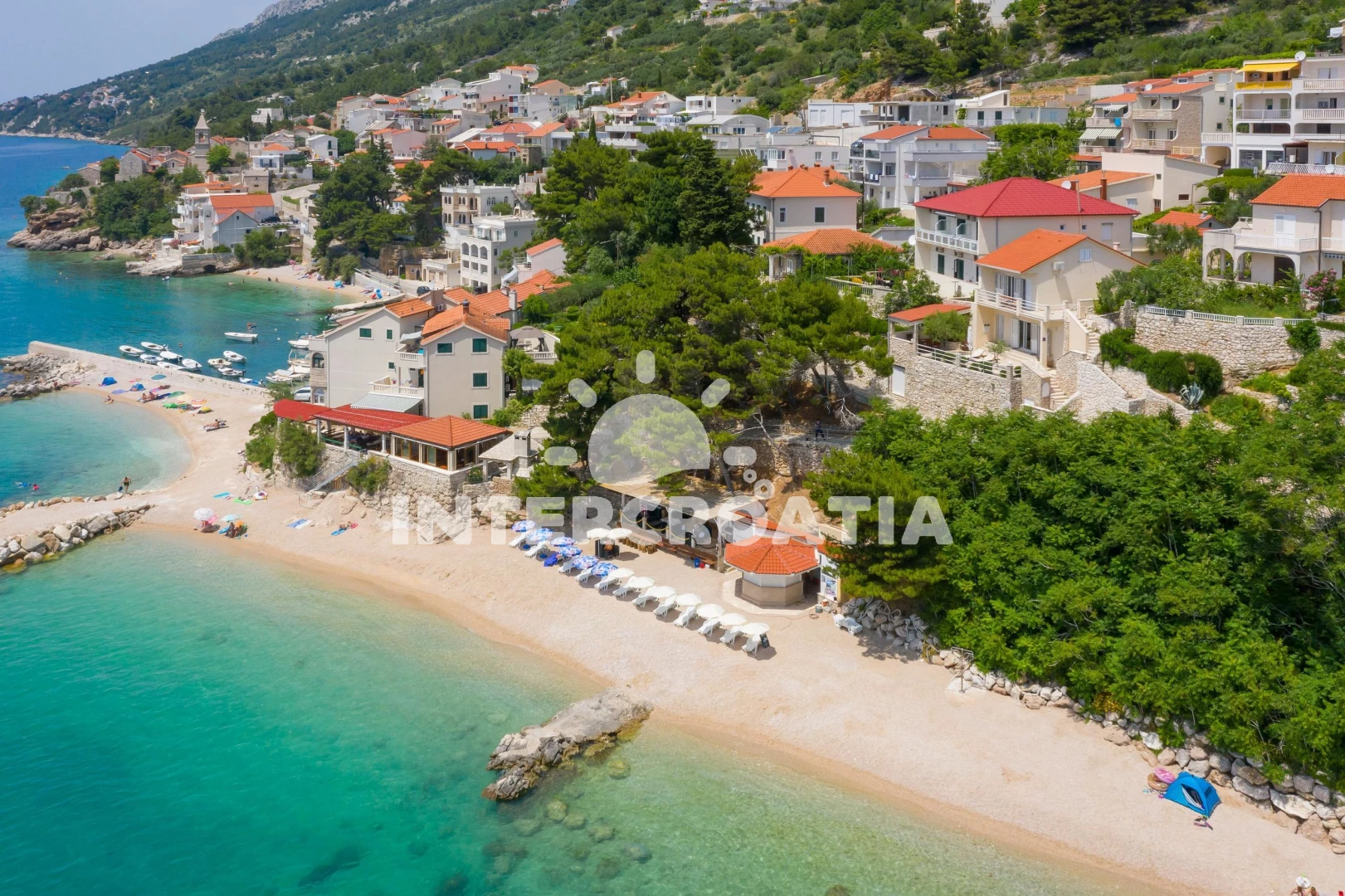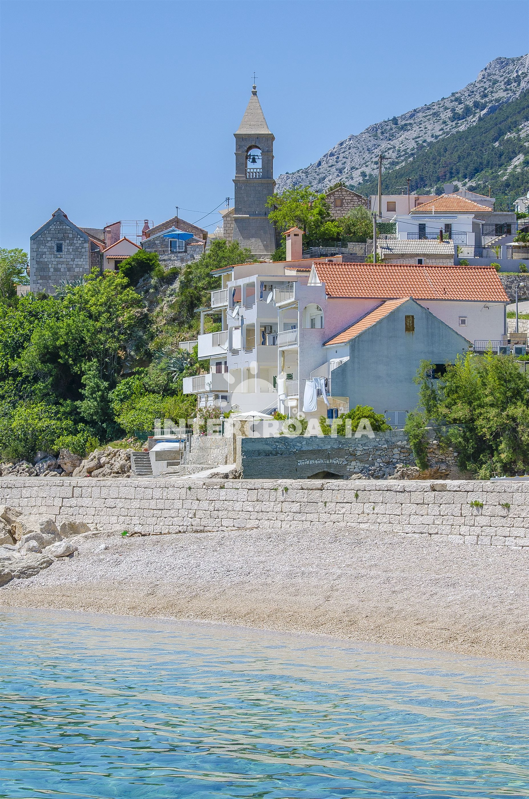 Vzdálenosti: Moře 55 m, pláž 55 m (oblázky), bar 70 m, restaurace 120 m, centrum 200 m, supermarket 250 m, půjčovna motorových člunů 500 m, veřejná doprava 1,5 km, pošta 5 km, směnárna 5 km, lékárna 10 km, potápění 16 km, čerpací stanice 16 km, banka 16 km, tenisové kurty 16 km, půjčovna kol 16 km, ambulance 16 km, diskotéka 20 km, trajekt (Makarska) 22 km, letiště (Split) 59 km, park Plitvice 121 km,