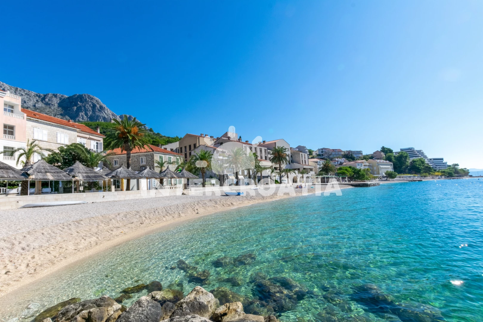 Vzdálenosti: Moře 5 m, pláž 5 m (oblázky), centrum 20 m, supermarket 20 m, bar 20 m, restaurace 20 m, lékárna 100 m, půjčovna motorových člunů 200 m, banka 200 m, čerpací stanice 1 km, veřejná doprava 2 km, trajekt (Makarska) 9 km,