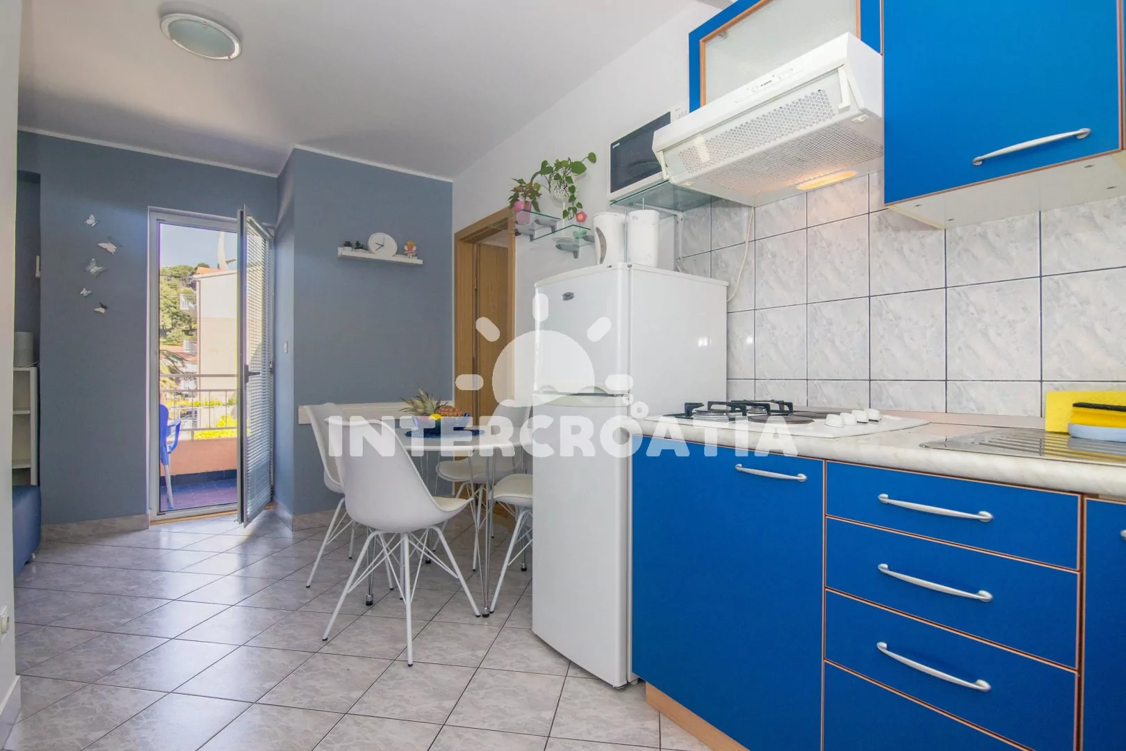 Apartmán (35 m2) s balkonem a výhledem na moře se nachází v 2. patře domu a je vhodný pro 2 až 3 osoby. Obývací pokoj je spojený s kuchyní. Kuchyňská linka je vybavena varnou deskou, digestoří,…