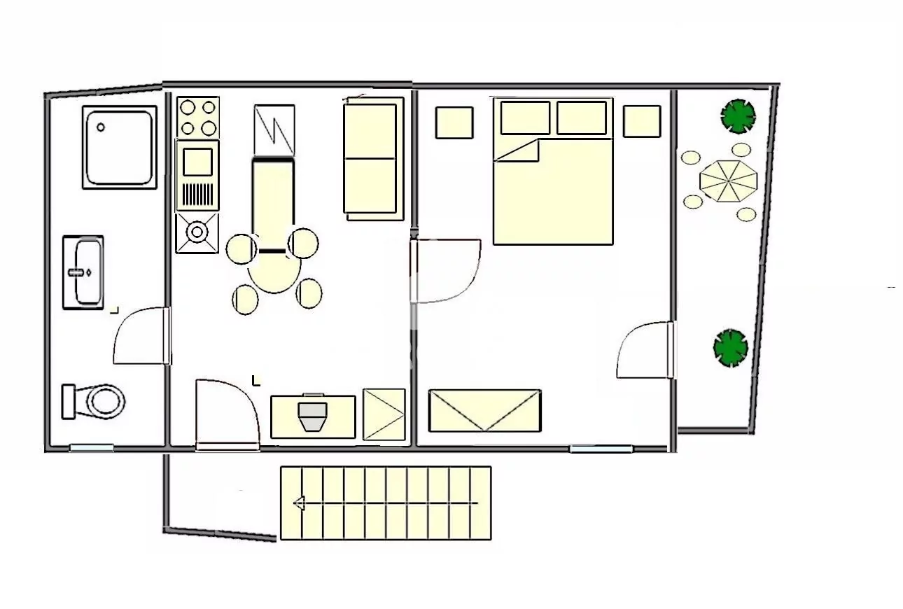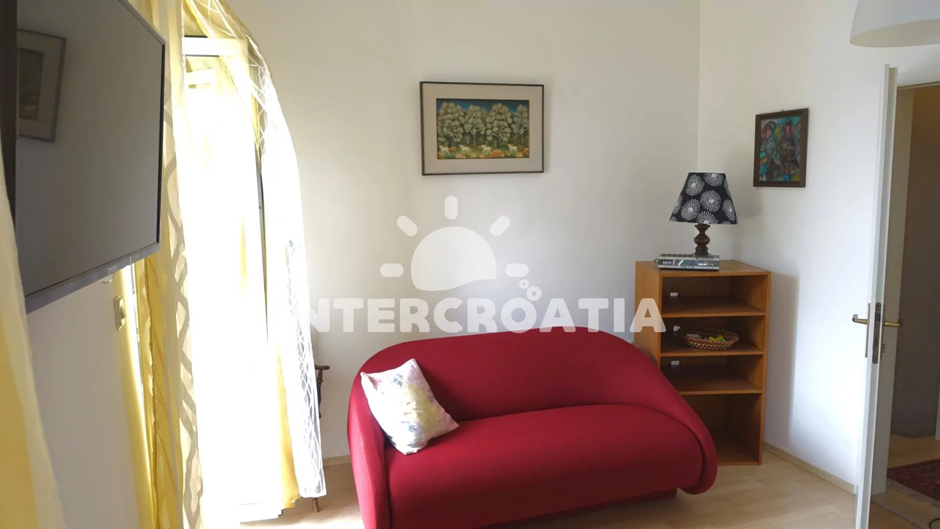 Apartmán (40 m2) s terasou a výhledem na moře se nachází ve 2. patře vily. Apartmán má 1 ložnici a je vhodný pro 2 až 4 osoby. Obývací pokoj je spojený s kuchyní. Kuchyňská linka je vybavena…