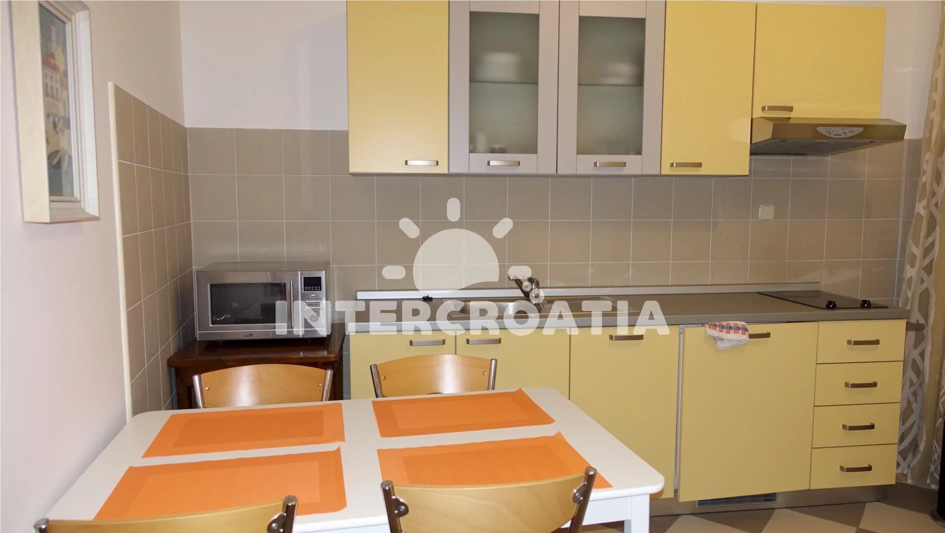 Apartmán (40 m2) s terasou a výhledem na moře se nachází ve 2. patře vily. Apartmán má 1 ložnici a je vhodný pro 2 až 4 osoby. Obývací pokoj je spojený s kuchyní. Kuchyňská linka je vybavena dvouplotýnkový vařičem, digestoří, myčkou na nádobí, rychlovarnou konvicí, mikrovlnnou troubou, kávovarem, nádobím a lednicí s mrazákem. Obývací pokoj s jídelním stolem pro 4 osoby, pohovkou (rozložitelná na extra lůžko pro 2 osoby), televizí se satelitním programem, radiem a klimatizací. Ložnice s dvoulůžkem a sejfem. Koupelna se sprchovým koutem, umyvadlem a wc. Hostům je k dispozici parkování u objektu zdarma.