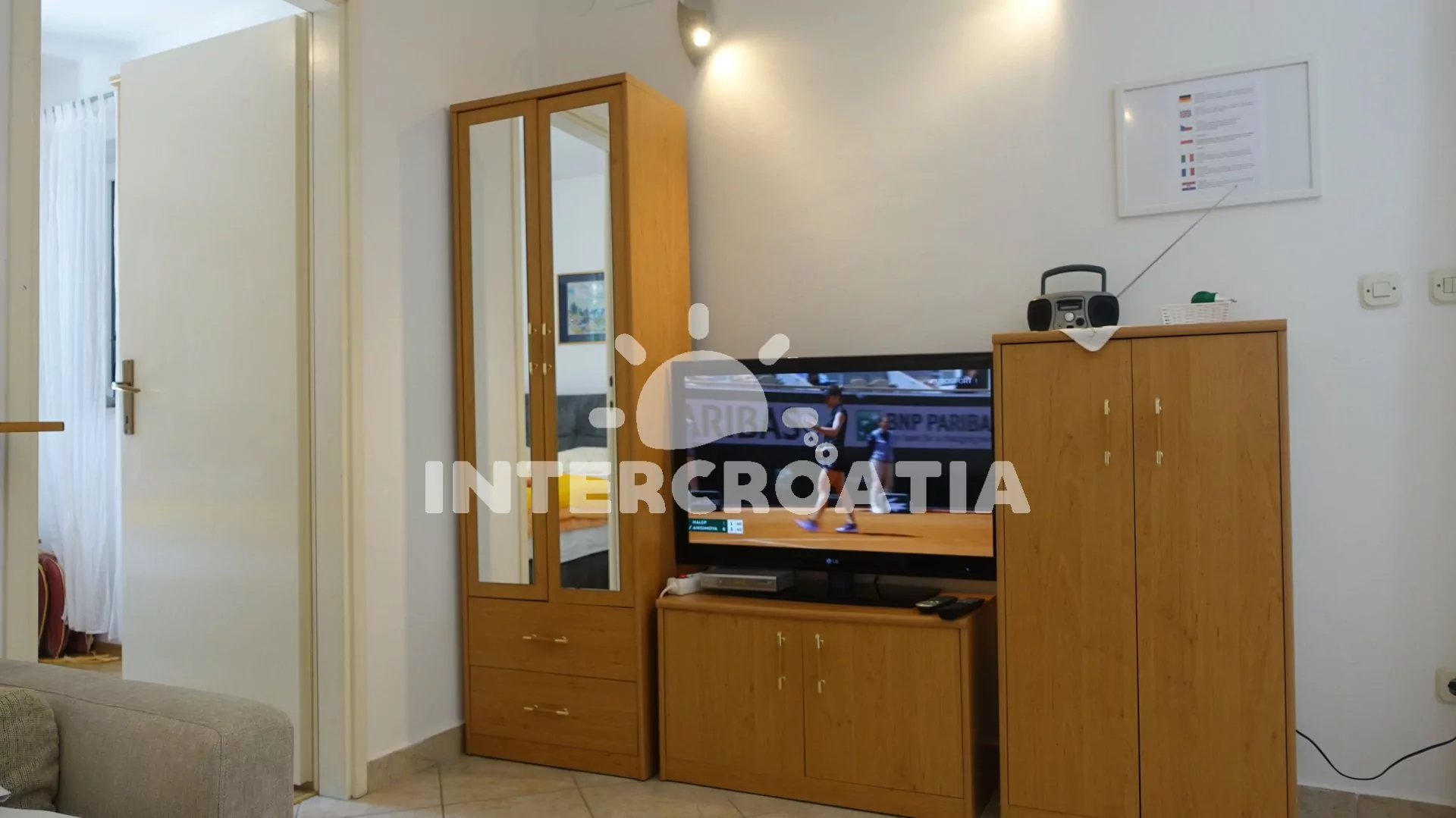 Apartmán (40 m2) s terasou a výhledem do klidné ulice se nachází v 1. patře vily. Apartmán má 1 ložnici a je vhodný pro 2 až 4 osoby. Obývací pokoj je spojený s kuchyní. Kuchyňská linka je vybavena…