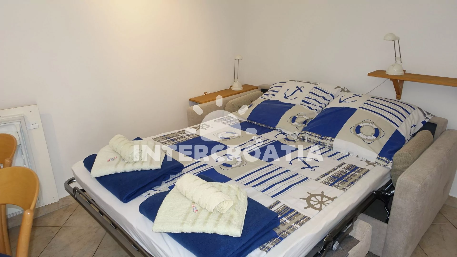 Vzdálenosti: Moře 100 m, moře a oblázková pláž 170 m, směnárna 3 m, restaurace bar, supermarket, půjčovna cyklistických kol 5 m, centrum 10 m, lékárna, přístav, půjčovna motorových člunů 100 m, pošta 200 m, čerpací stanice, potápění 400 m, ambulance, banka 500 m, venkovní bazén, tenis, minigolf, diskotéka 5 km, vnitřní bazén, trajekt, muzeum 10 km, letiště 80 km.