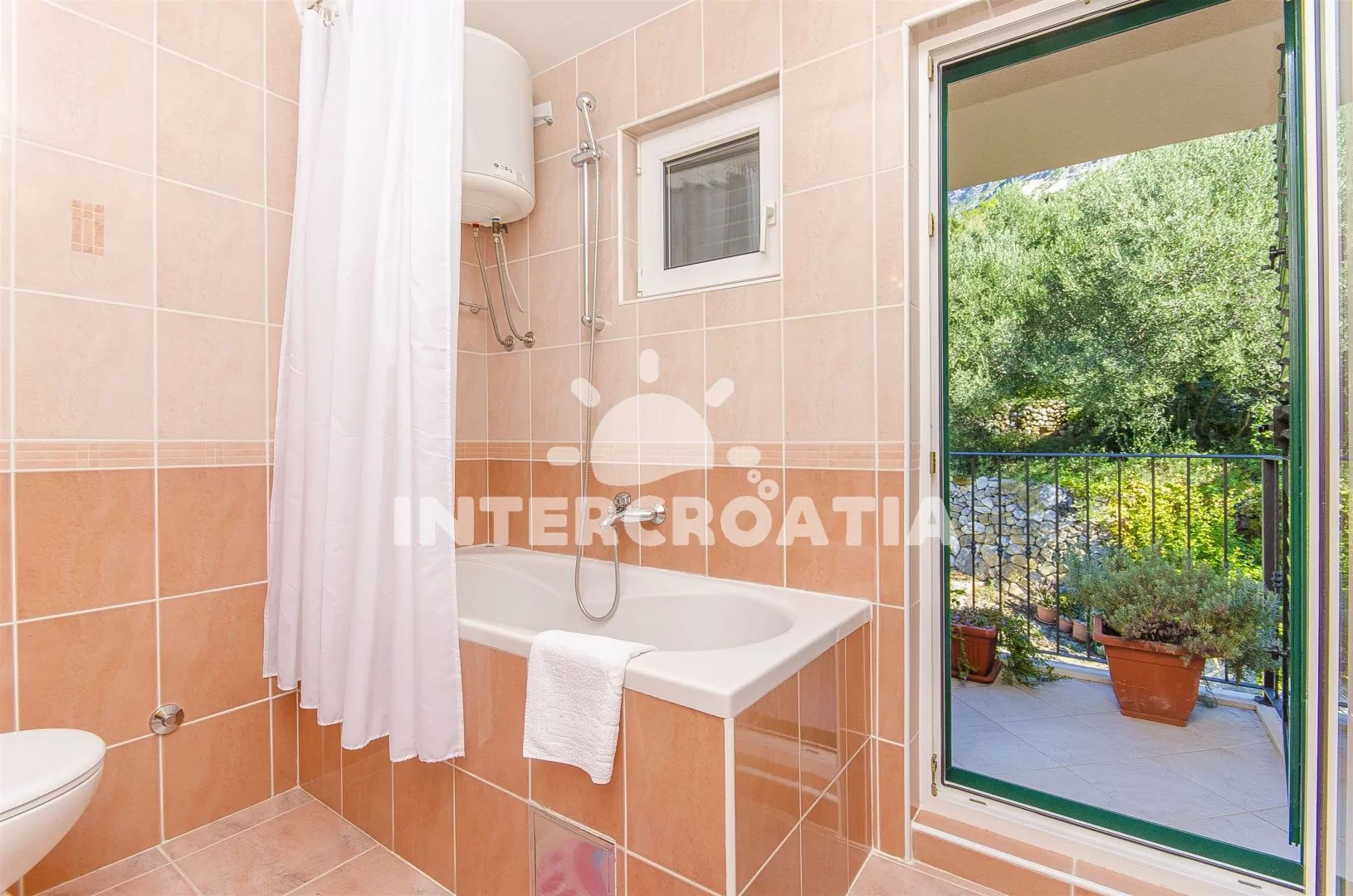 Vzdálenosti: Moře a pláž 100 m, centrum 1 km, restaurace a bar 100 m, supermarket 200 m, veřejná doprava 50 m, ambulance 500 m, čerpací stanice, lékárna, směnárna, banka, pošta, půjčovna cyklistických kol a potápění 1 km, diskotéka 3 km, půjčovna motorových člunů 500 m, muzeum 10 km, přístav 100 m, trajekt (Makarska) 9,9 km, letiště (Split) 85 km.