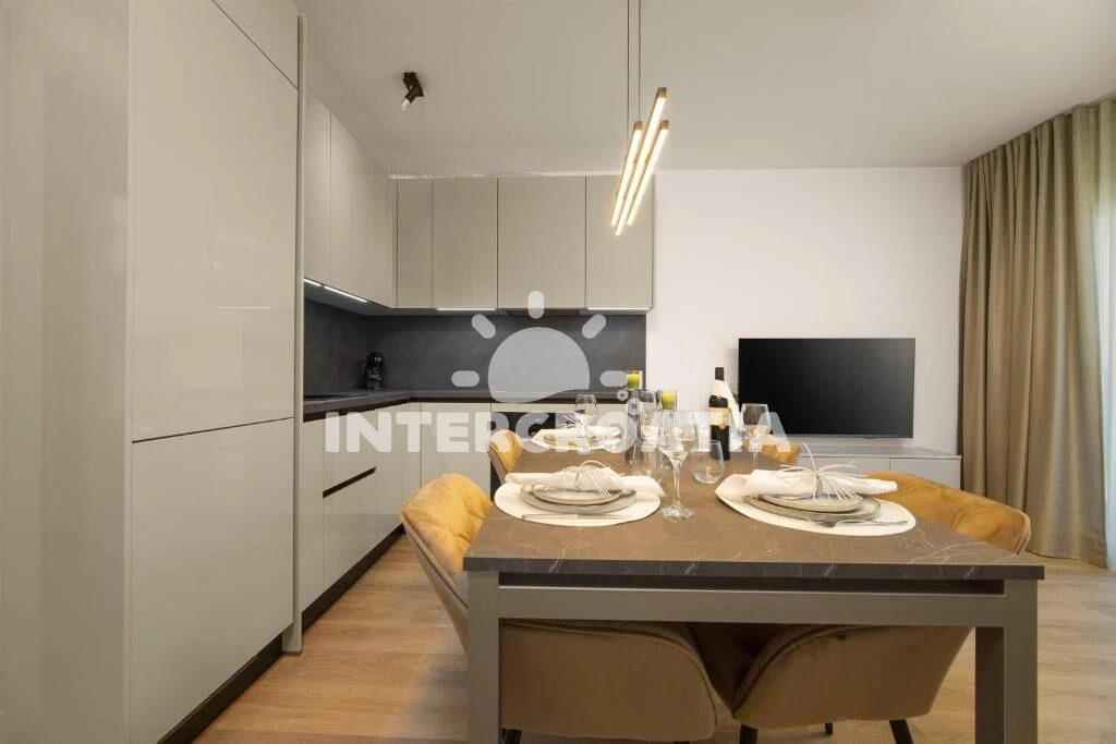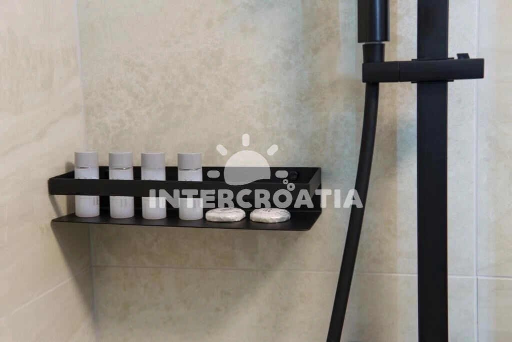 Apartmán (45 m2) s balkonem. Nachází se v 1. patře objektu. Apartmán má 1 ložnici a je vhodný pro až 4 osoby. Kuchyňská linka je vybavena varnou deskou, troubou, toustovačem, kávovarem, myčkou na nádobí, rychlovarnou konvicí, nádobím, lednicí, mrazákem. V obývací místnosti je rozložitelná pohovka (extra lůžko pro 2 osoby). K dispozici televize, žehlička. Ložnice s dvoulůžkem. Koupelna se sprchovým koutem, umyvadlem, fénem a WC.