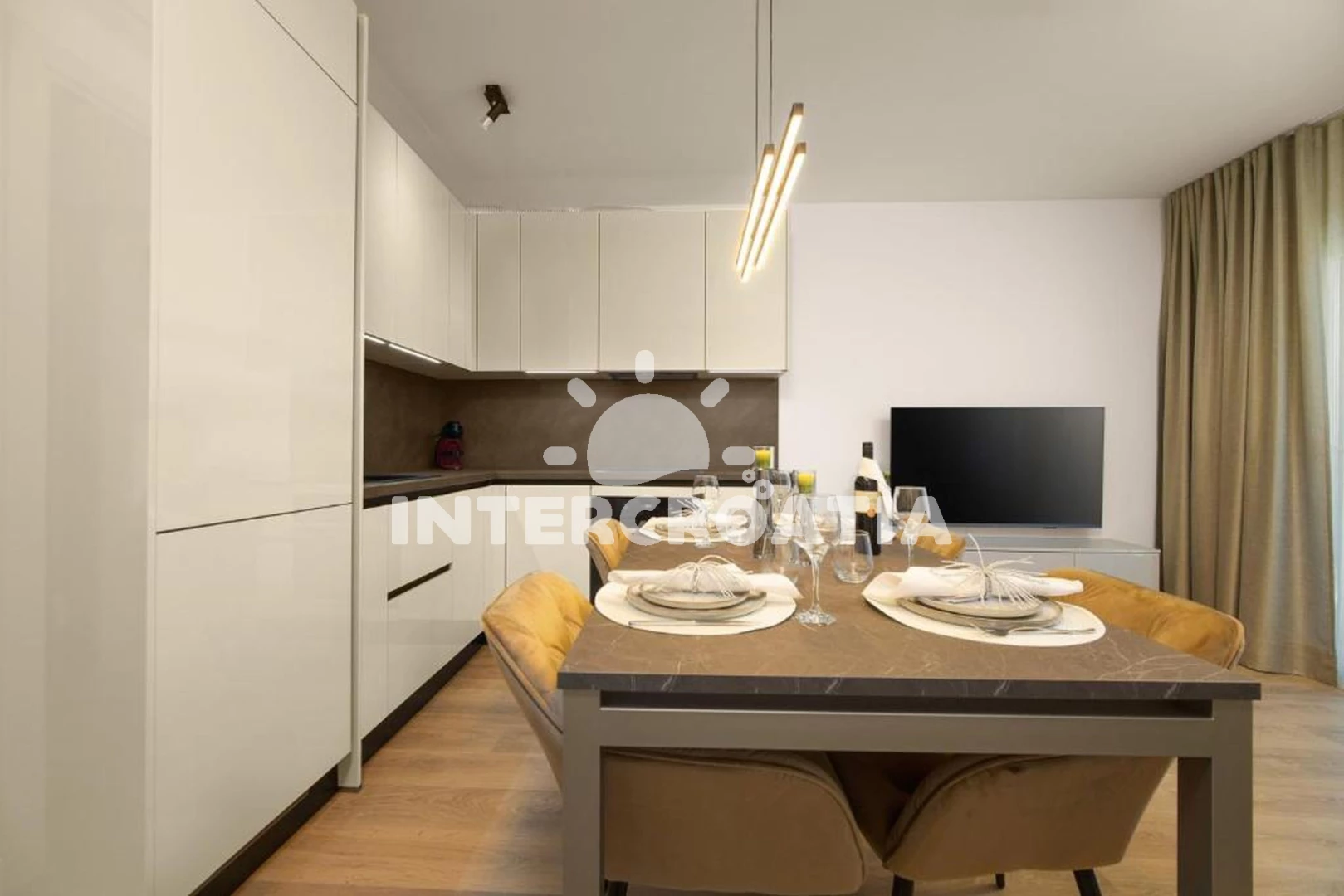 Apartmán (65 m2) s balkonem. Nachází se ve zvýšeném přízemí objektu. Apartmán má 2 ložnice a je vhodný pro až 4 osoby. Kuchyňská linka je vybavena varnou deskou, kávovarem, troubou, toustovačem, myčkou na nádobí, rychlovarnou konvicí, nádobím, lednicí, mrazákem. V obývací místnosti je rozložitelná pohovka (extra lůžko pro 1 osobu). K dispozici televize, žehlička. První ložnice s dvoulůžkem. Druhá ložnice s jednolůžkem. Koupelna se sprchovým koutem, umyvadlem, fénem a WC.