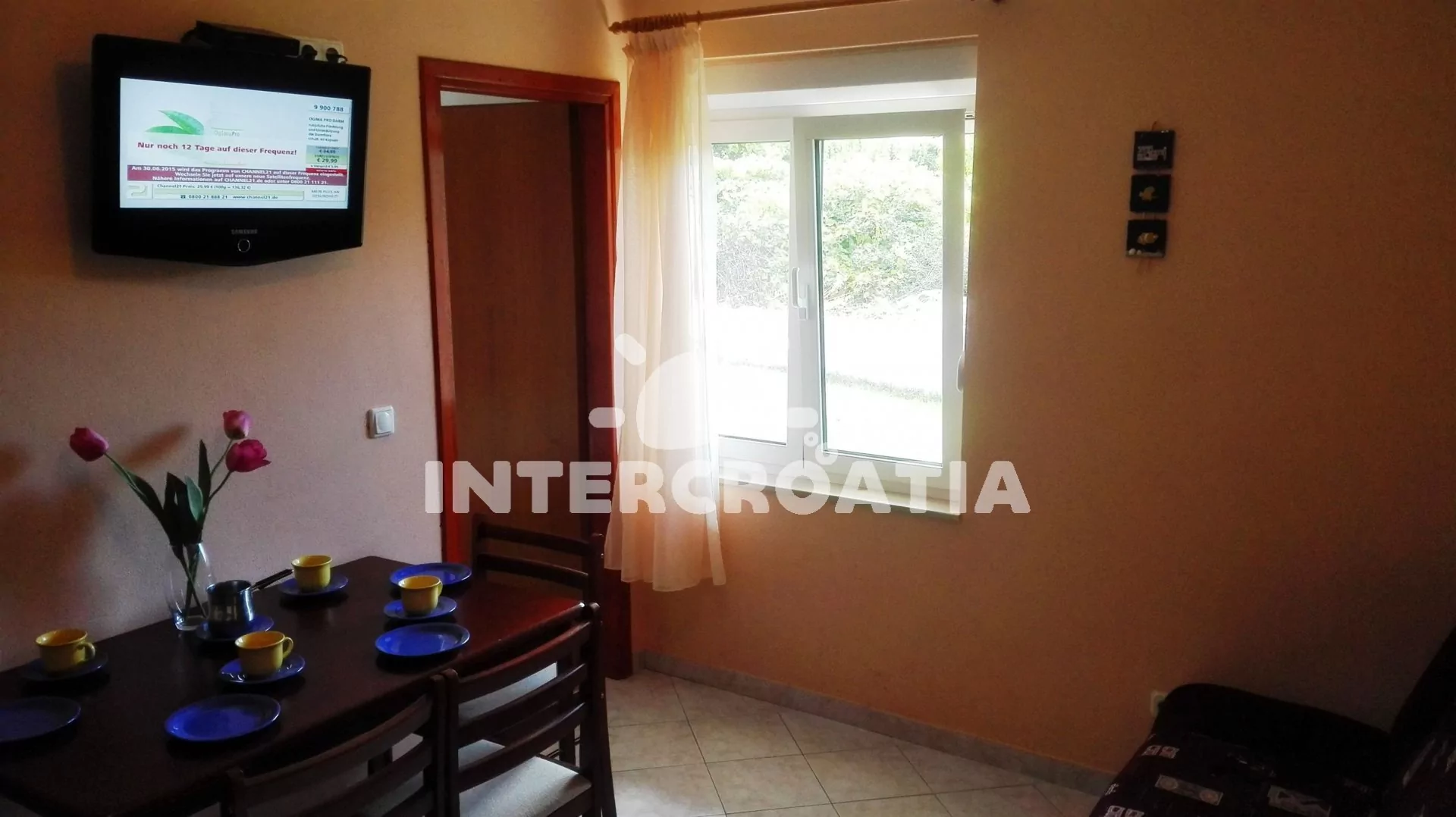 Apartmán v přízemí domu je vhodný pro 2 až 3 osoby, venkovní posezením na terase k dispozici. Obývací pokoj je spojený s kuchyní. Kuchyňská linka s elektrickým dvouplotýnkovým sporákem, nádobím a…