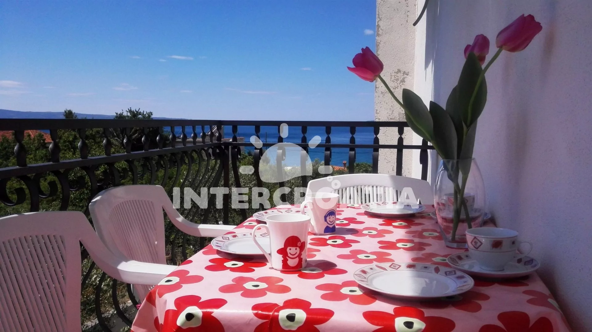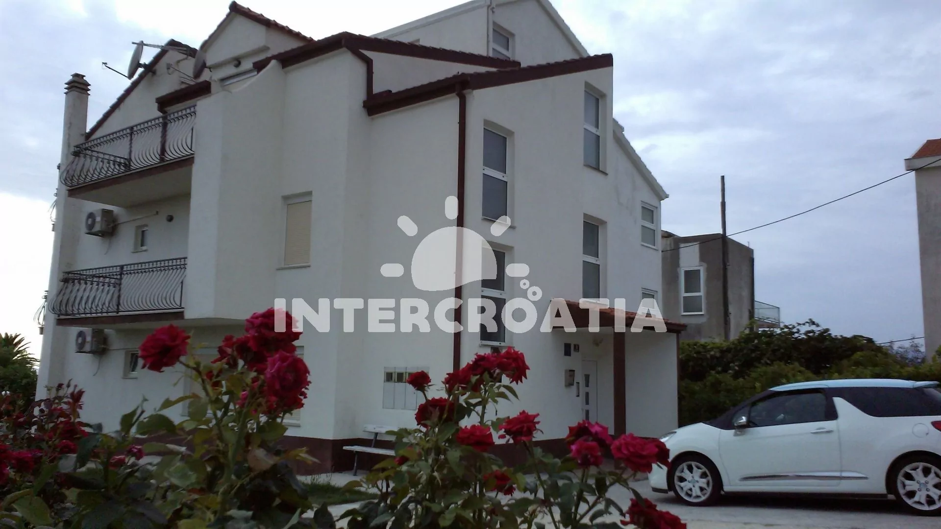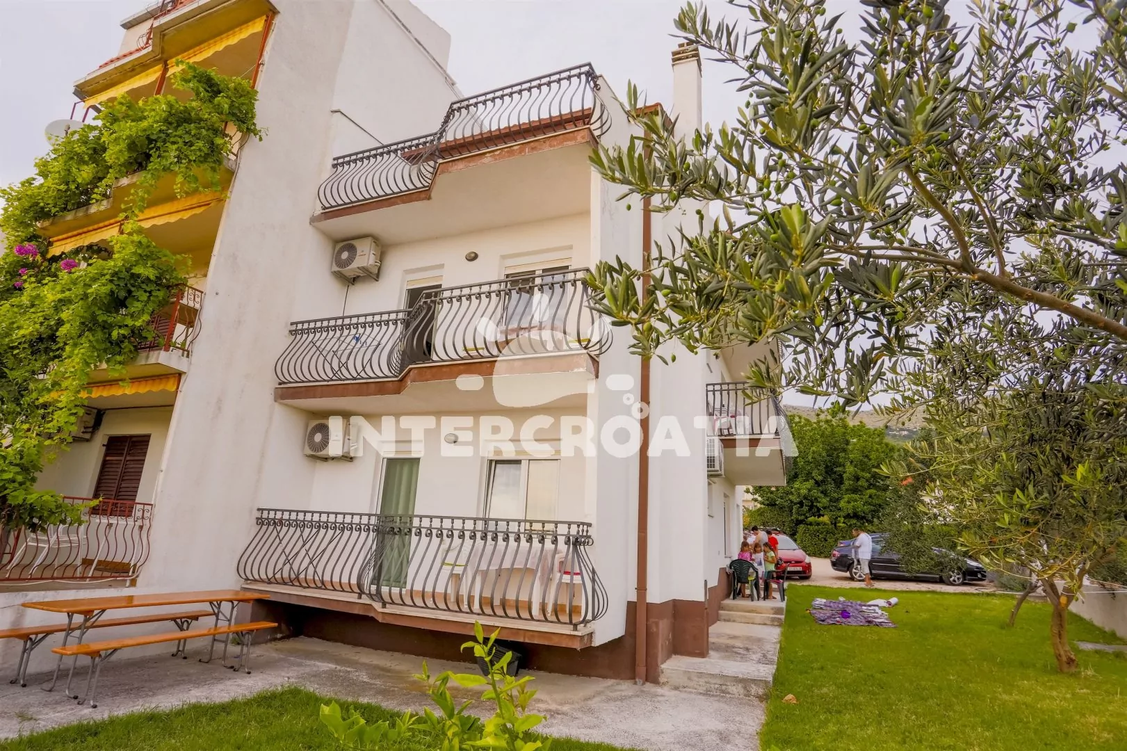 Dům s výhledem na moře, pouze 100 m od pláže. K dispozici venkovní posezení na zahradě s grilem, apartmány s lodžiemi a terasami. Pozemek s vlastními parkovacími místy.