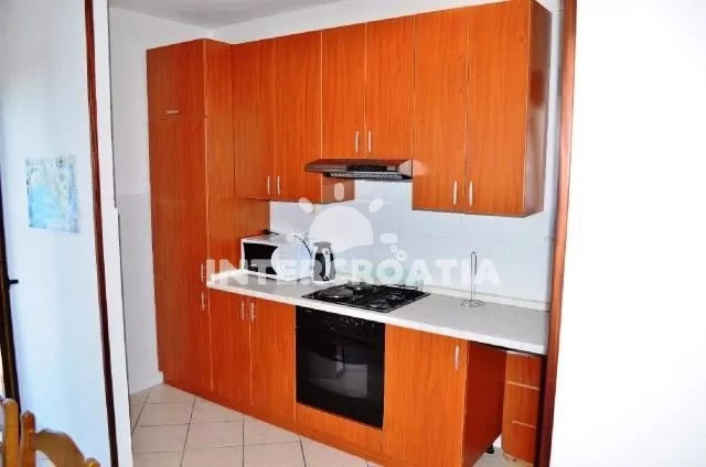 Apartmán (92 m2) s výhledem na moře se nachází v prvním patře vily a je vhodný pro 6 až 8 osob. Obývací pokoj je spojený s kuchyní. Kuchyňská linka je vybavena sporákem, digestoří, troubou, myčkou na…