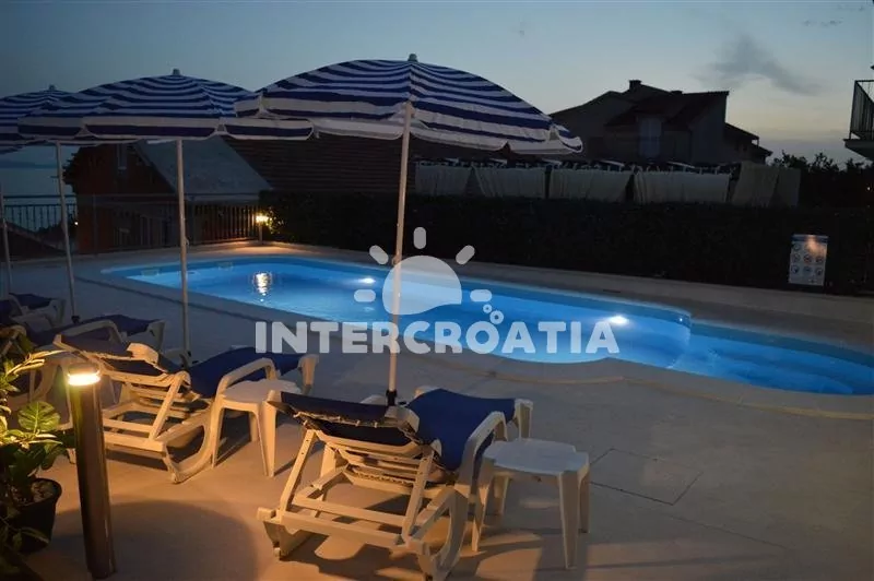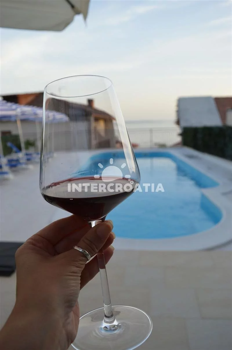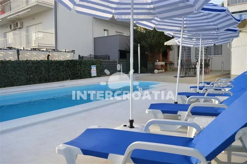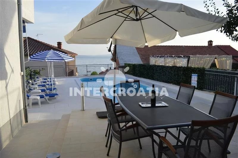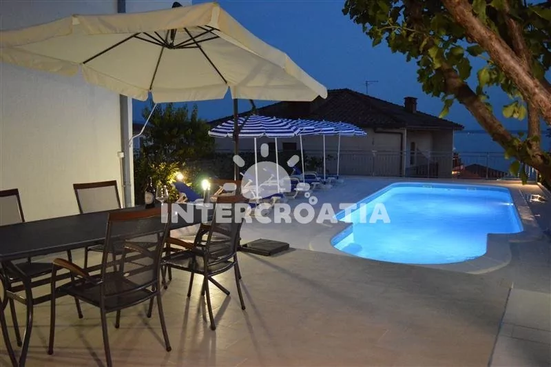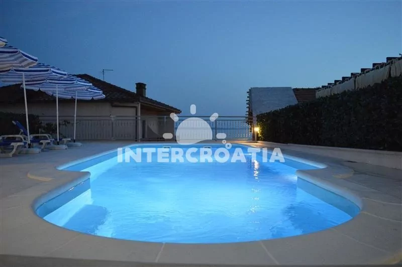 Apartmánová vila s krásným bazénem, terasou s posezením, lehátky a slunečníky. Apartmány jsou vybaveny lodžiemi a nabízí výhled na moře. K dispozici parkovací místa pro automobil.