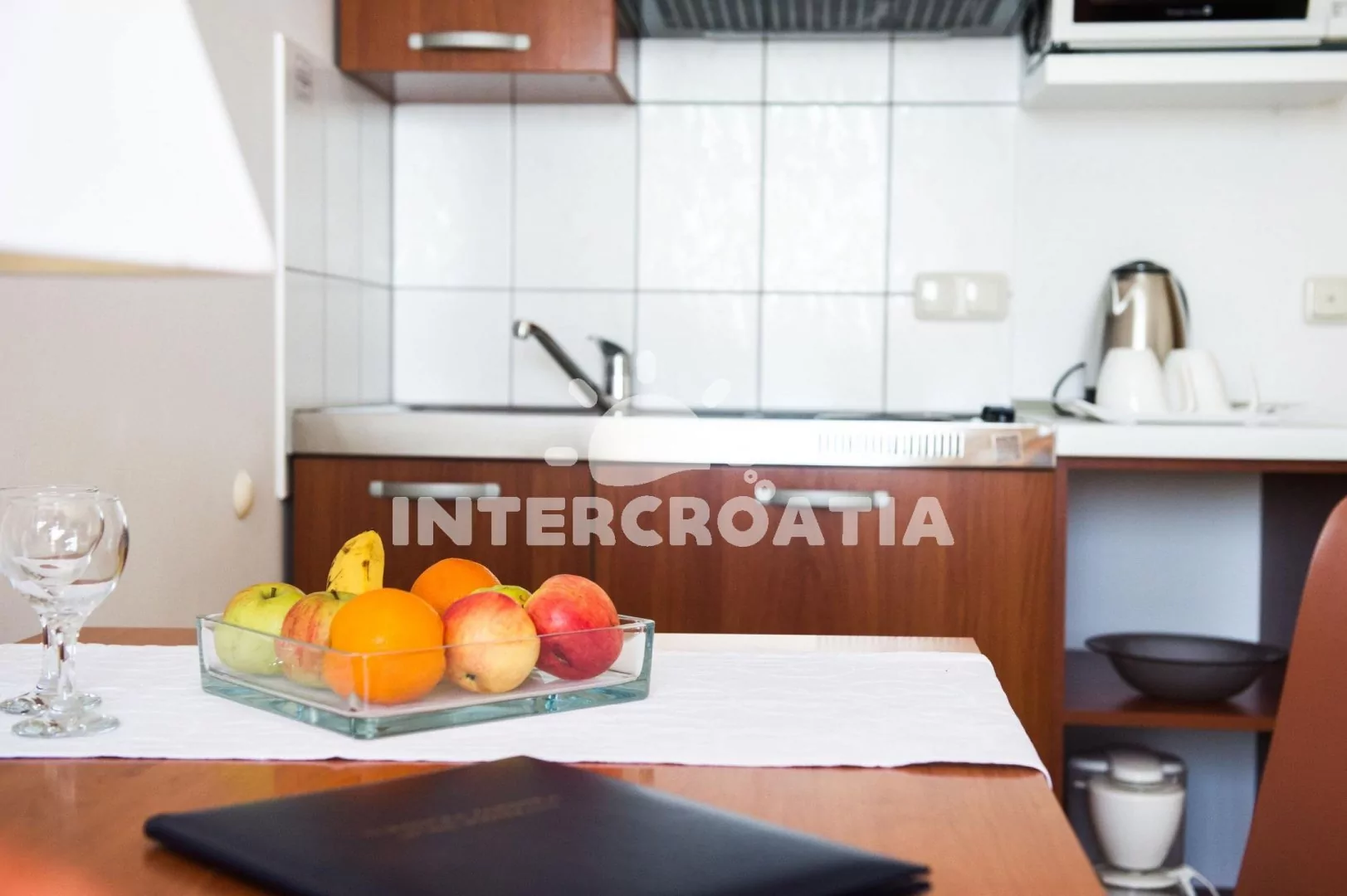 Vzdálenosti: Moře a oblázková pláž 350 m, supermarket, veřejná doprava, restaurace, bar 200 m, lékárna, ambulance 1 km, pošta, směnárna 1,8 km, centrum 2 km, přístav, potápění, venkovní a vnitřní bazén, tenis, diskotéka 4 km, čerpací stanice 6 km, banka 6,5 km, trajekt, muzeum 8 km, letiště 25 km.