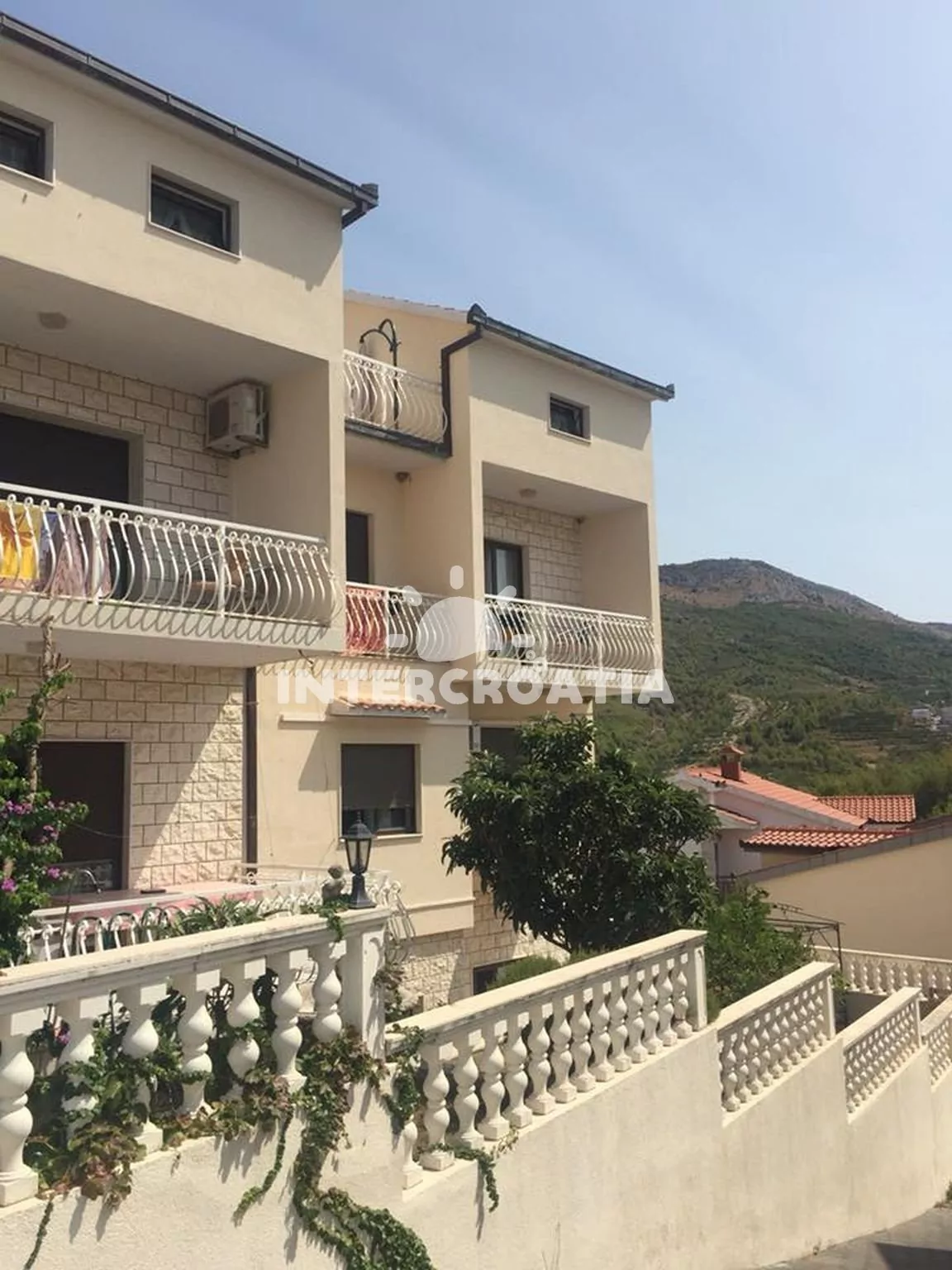 Vzdálenosti: Moře a betonová-oblázková plaž 700 m, velká oblázková pláž 800 m, centrum 1 km, restaurace, supermarket, bar a veřejná doprava 400 m, tenisové kurty 500 m, směnárna, přístav a potápění 1 km, lékárna 1,4 km, pošta 3 km, čerpací stanice 2,5 km, ambulance 6,5 km, diskotéka 7,5 km, muzeum 100 km, trajekt (Split) 9,7 km, letiště (Split) 24 km.