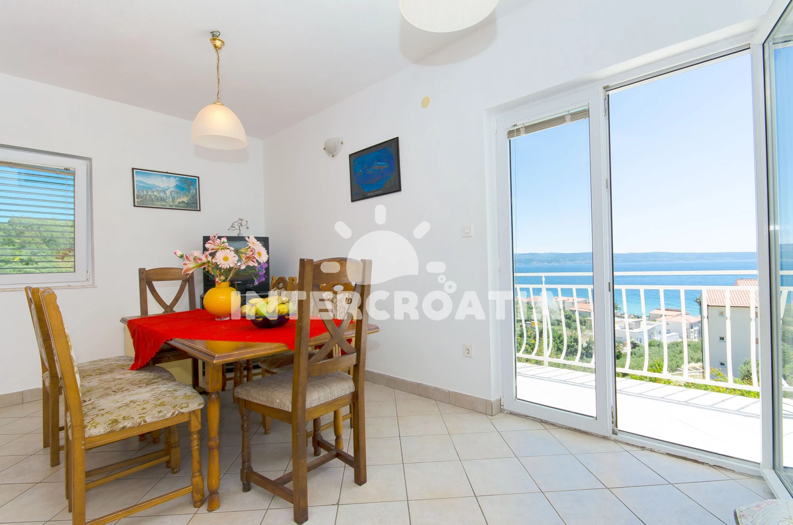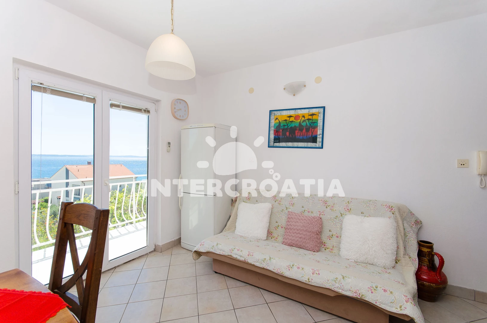 Vzdálenosti: Moře 250 m, pláž 250 m (písčitá a oblázková), veřejná doprava 250 m, bar 250 m, supermarket 250 m, restaurace 250 m, ambulance 800 m, lékárna 800 m, pošta 1 km, banka 1 km, centrum 1 km, směnárna 1 km, čerpací stanice 6 km, park Plitvice 10 km, trajekt (Split) 15 km, letiště (Split) 35 km,