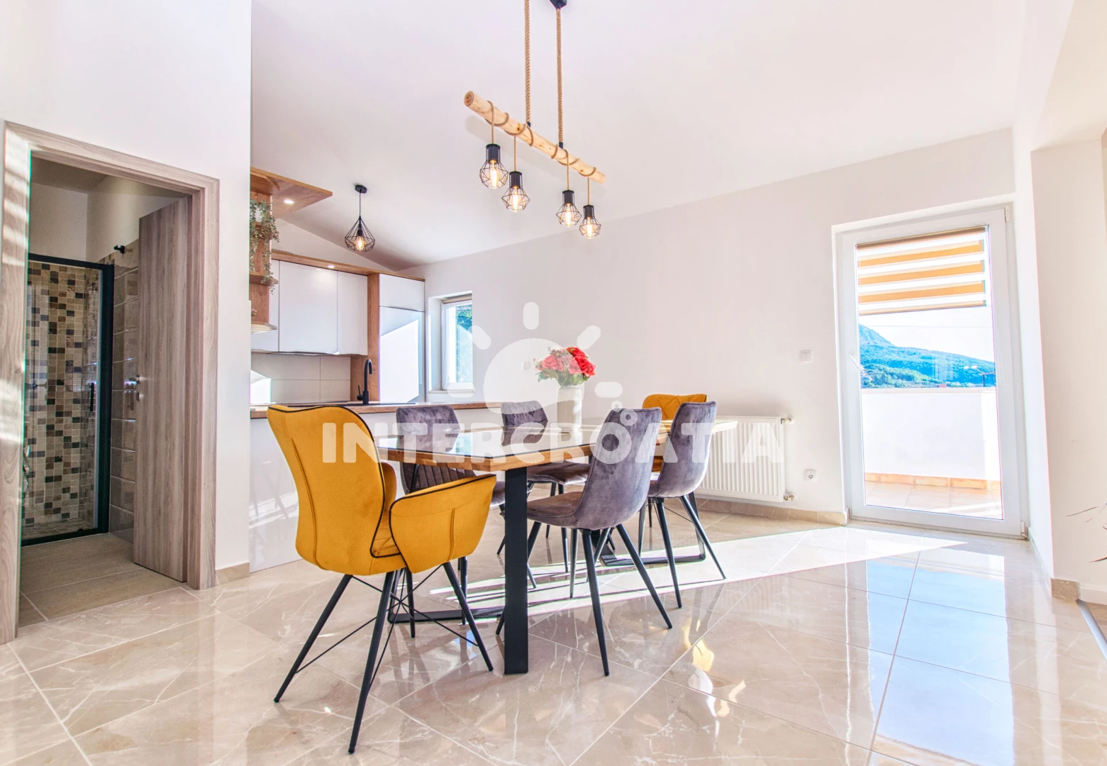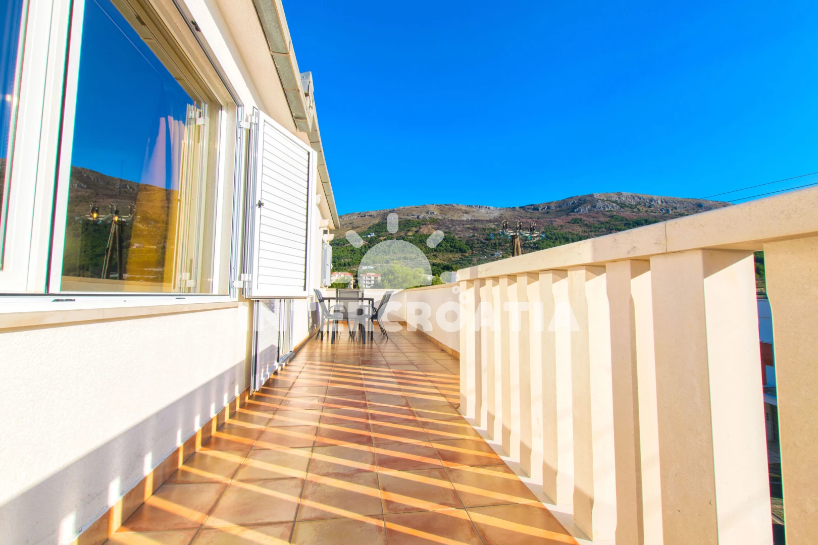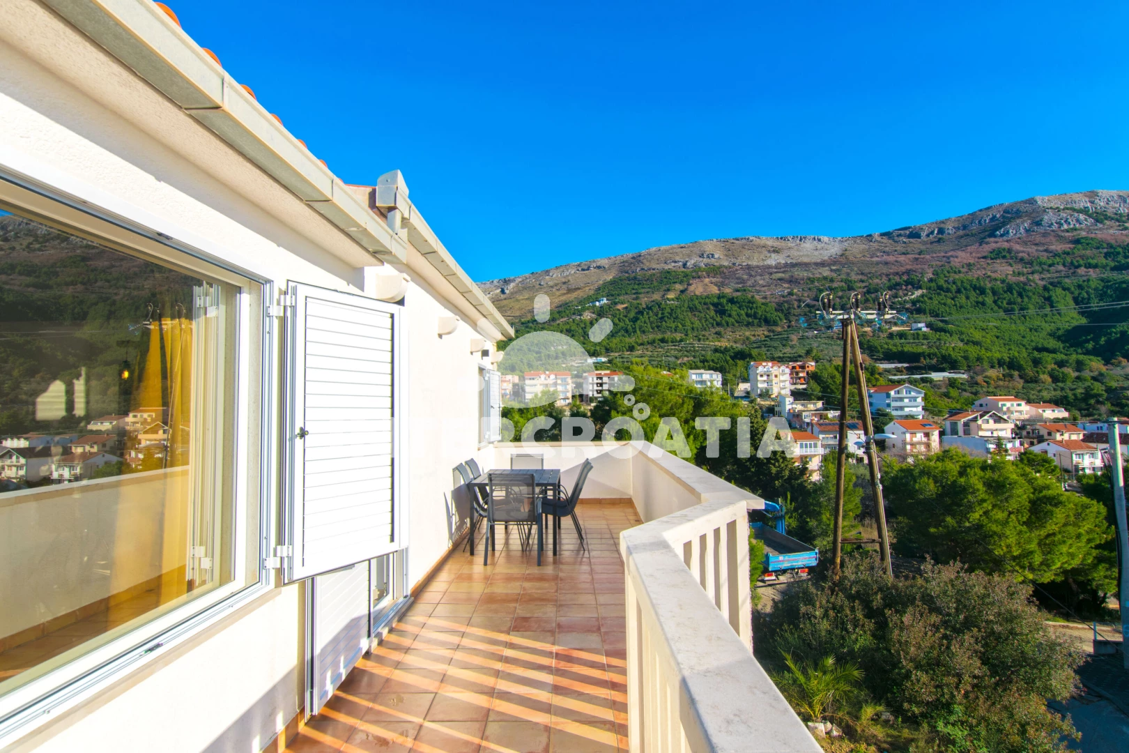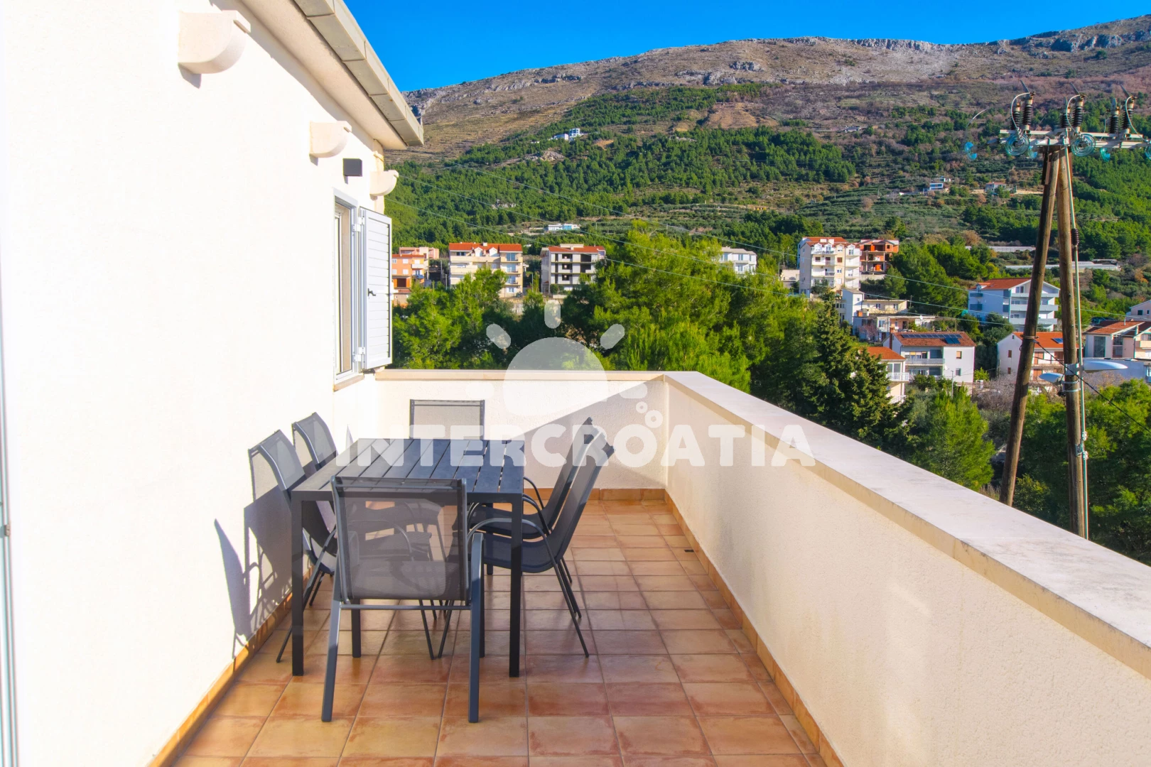 Vzdálenosti: Moře 350 m, pláž 400 m (oblázky), restaurace 300 m, bar 350 m, supermarket 400 m, veřejná doprava 400 m, centrum 1,5 km, trajekt (Split) 10 km, letiště (Split) 35 km,