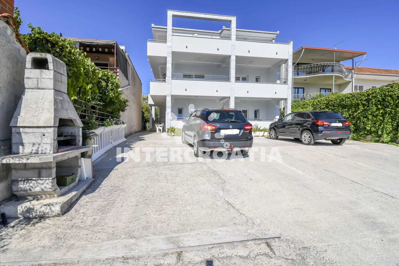 Vzdálenosti: Moře 30 m, pláž 30 m (oblázková a betonové desky), centrum 100 m, supermarket 100 m, bar 100 m, restaurace 100 m, veřejná doprava 400 m, lékárna 3 km, ambulance 3 km, čerpací stanice 3 km, pošta 3 km, marina 3 km, letiště (Split) 15 km, trajekt (Split) 30 km,