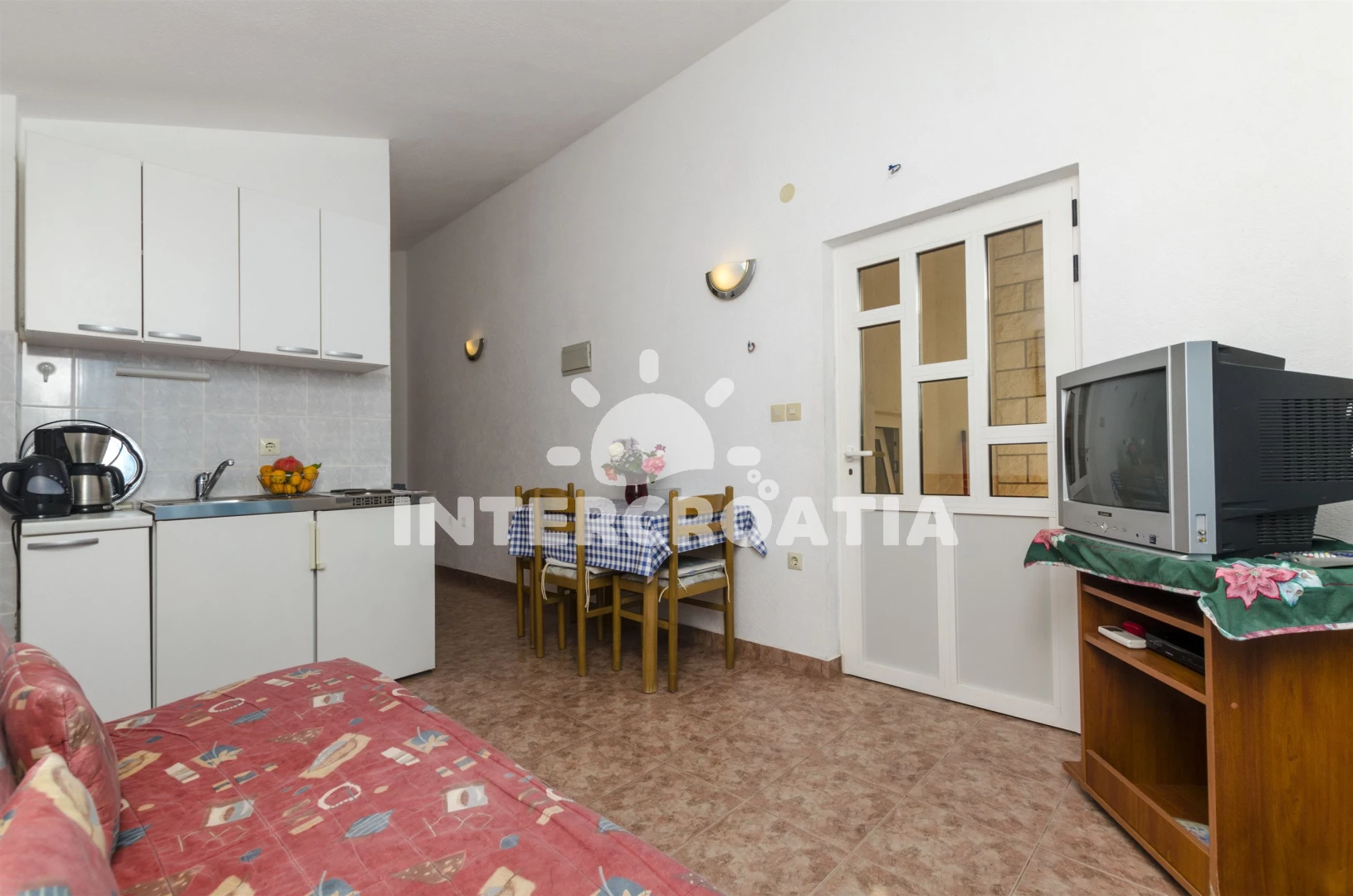 Vzdálenosti: Moře 60 m, pláž 150 m (oblázky), centrum 30 m, bar 30 m, restaurace 200 m, supermarket 350 m, veřejná doprava 500 m, kotviště pro čluny 2 km, marina 2 km, pošta 2 km, směnárna 2 km, ambulance 2 km, lékárna 2 km, banka 6 km, čerpací stanice 6 km, muzeum 6 km, diskotéka 6 km, půjčovna kol 6 km, trajekt (Trogir) 6 km, půjčovna motorových člunů 6 km, potápění 14 km, letiště (Split) 14 km,