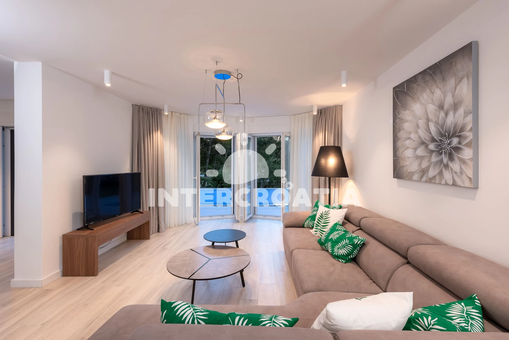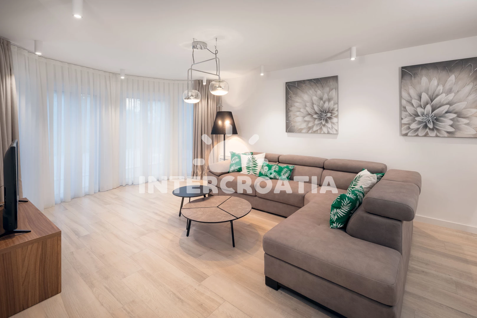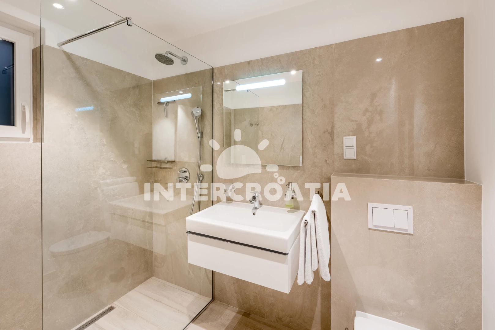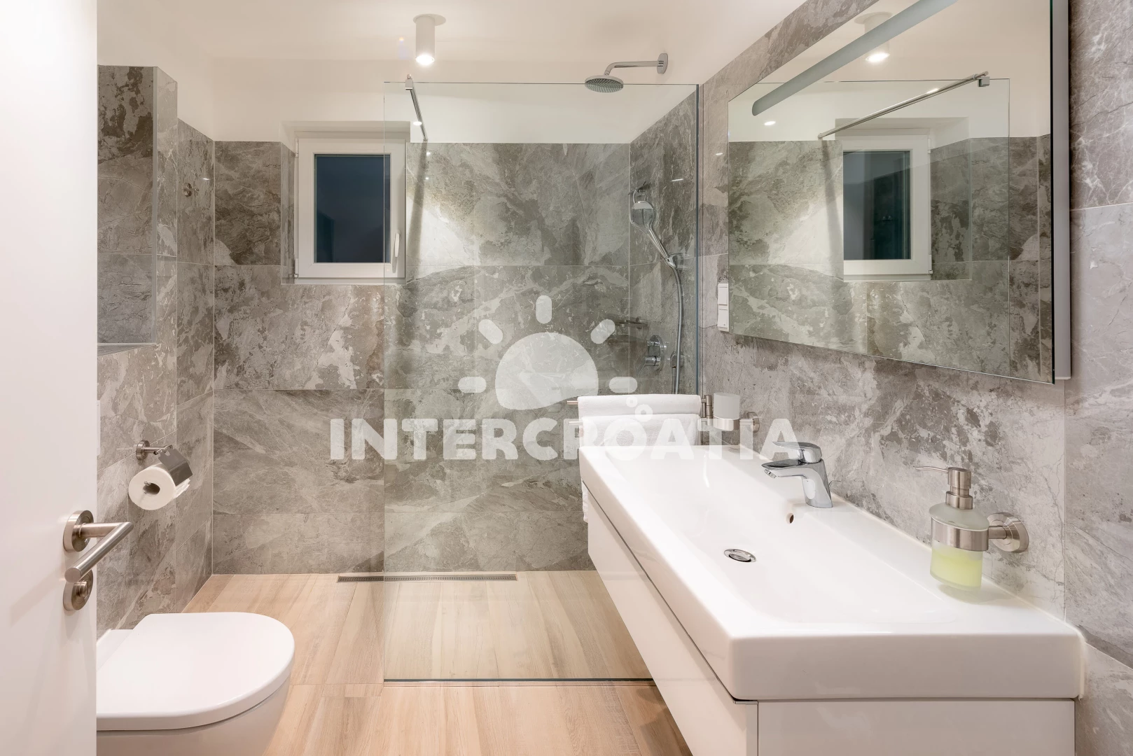Apartmán (120 m2) s terasou. Nachází se v přízemí objektu. Apartmán má 3 ložnice a je vhodný pro až 8 osob. Kuchyňská linka je vybavena varnou deskou, kávovarem, troubou, myčkou na nádobí, mikrovlnnou troubou, rychlovarnou konvicí, nádobím, lednicí, mrazákem. V obývací místnosti je rozložitelná pohovka (extra lůžko pro 2 osoby). K dispozici televize, žehlička. První ložnice s dvoulůžkem. Druhá ložnice s dvoulůžkem. Třetí ložnice s dvoulůžkem. První koupelna se sprchovým koutem, umyvadlem, fénem a WC. Druhá koupelna se sprchovým koutem, umyvadlem, fénem a WC.