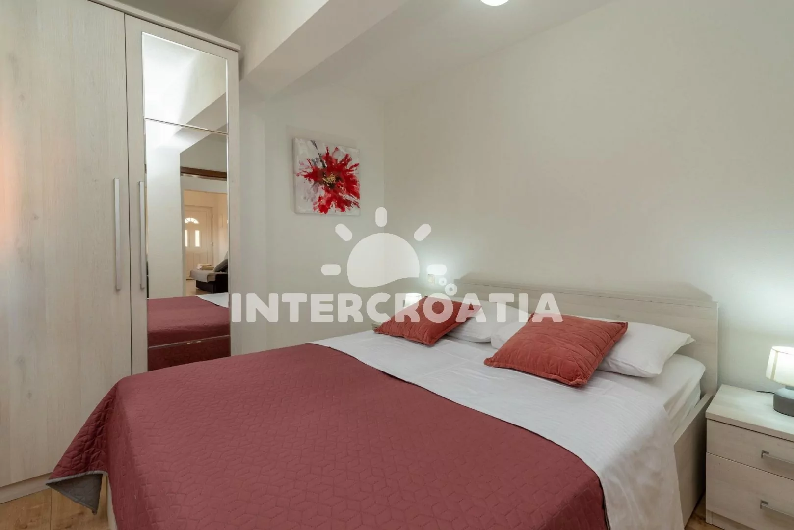 Seget Donji je destinace, která kombinuje rekreaci u moře a kulturní zážitky v Trogiru. Z letoviska si můžete také naplánovat mnoho zajímavých výletů. Apartmánová vila nadchne všechny návštěvníky výhledem na moře. Váš pobyt si můžete zpříjemnit koupáním v bazénu, který je umístěný u ubytování. Příjemné chvíle s rodinou a přáteli zažijete i při grilování, které můžete zorganizovat u apartmánu. Vzdálenost k moři a oblázkové pláži je 600 m. Pláž je široká a částečně zastíněná stromy. Přístup do moře je pozvolný, takže ho bez problému zvládnou mladší děti i starší osoby. Kolem pobřeží vede promenáda, kterou rádi využívají cyklisté a běžci. Velmi oblíbeným místem ke koupání je sousední oblázková pláž Medena. Kromě oblázků mohou návštěvníci ležet na betonových plochách. Pláž disponuje restauracemi, kavárnami a sportovním hřištěm. Pro děti jsou na moři připravené nafukovací atrakce. K pláži sahá borový les, kde najdete příjemný chládek. Milovníci historie si rádi prohlédnout opevněný zámek z 16. století a kostely v okolí Segetu. Opravdu cenné památky ale najdou v centru Trogiru. Letní měsíce v Trogiru jsou rájem pro příznivce společenského dění. Pravidelně se konají lidové festivaly, taneční vystoupení,, divadlo, gastronomické akce a hudební koncerty. Nelze opomenout ani památky, které patří k srdci Trogiru. Určitě vás zaujmou katedrála sv. Vavřince ze 13. století, kostel sv. Barbory, palác Ćipiko a pevnost Kamerlengo. K našim tipům, kam vyrazit na celodenní výlet patří Split, Šibenik a vodopády Krka.