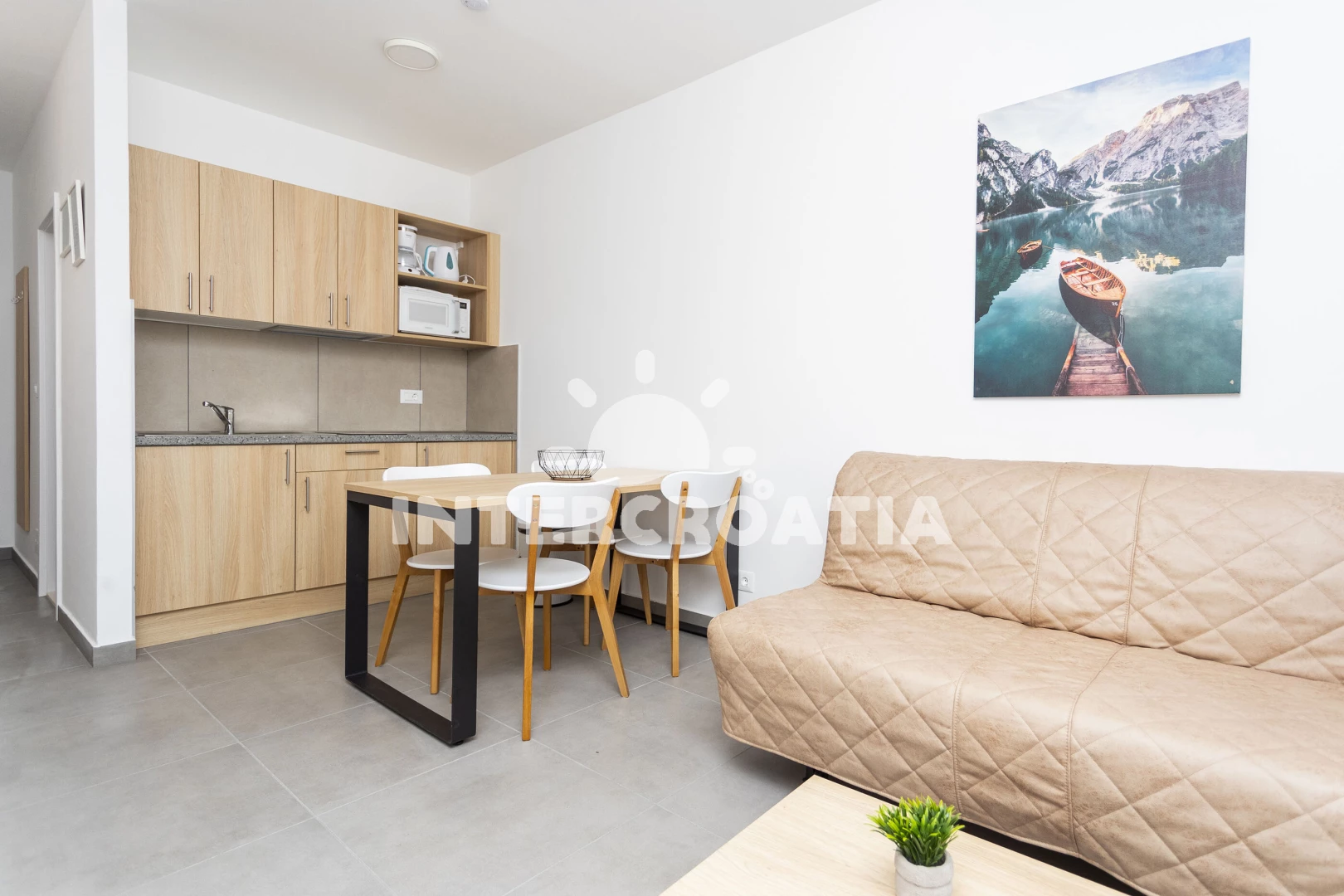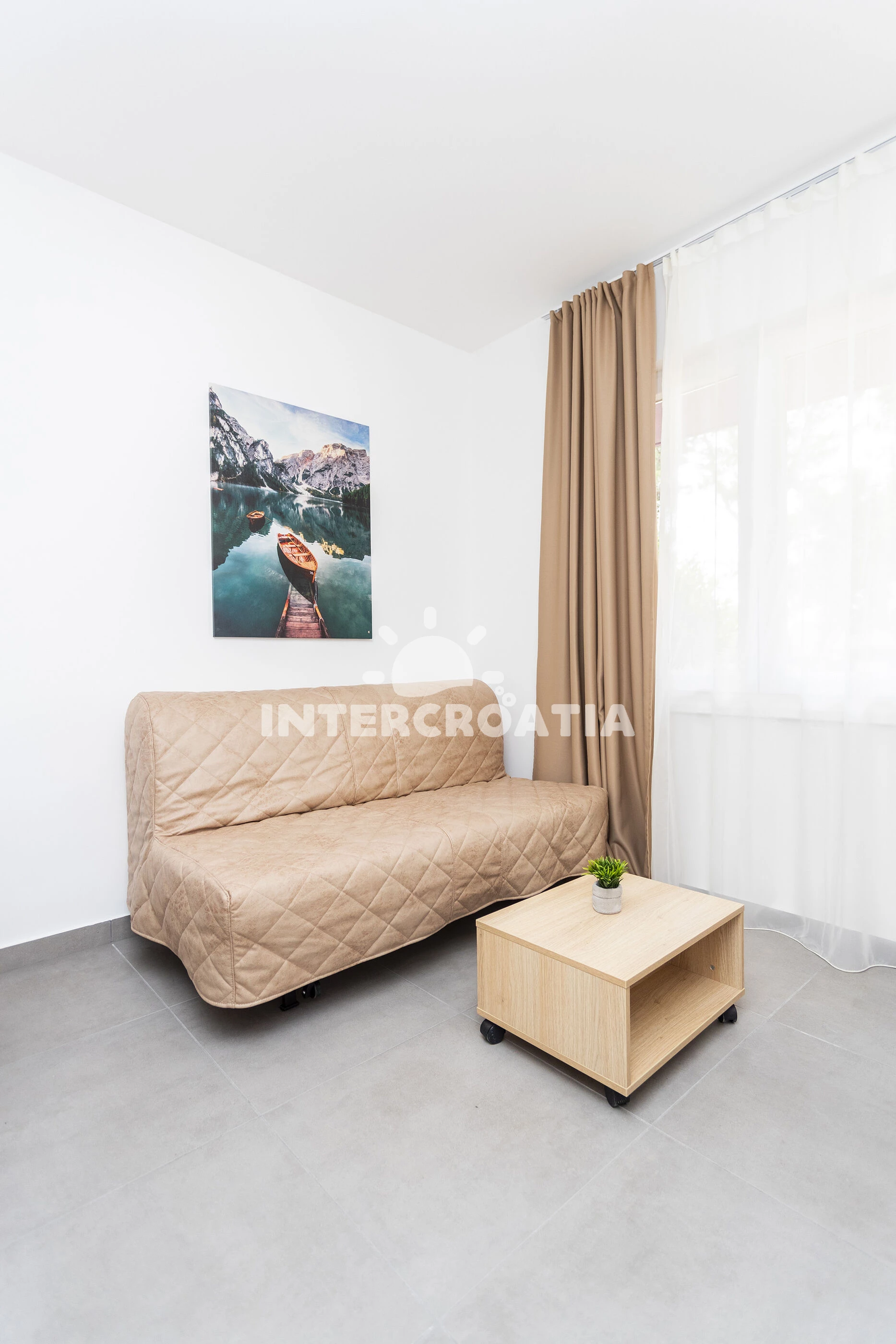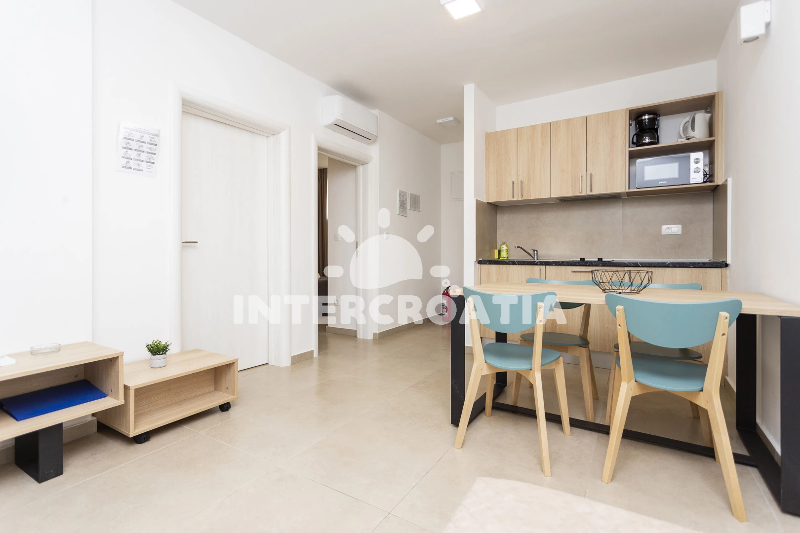 Vzdálenosti: Moře 300 m, pláž 300 m (oblázky), bar 300 m, supermarket 300 m, restaurace 300 m, veřejná doprava 500 m, centrum 3 km, čerpací stanice 4 km, letiště (Split) 10 km,