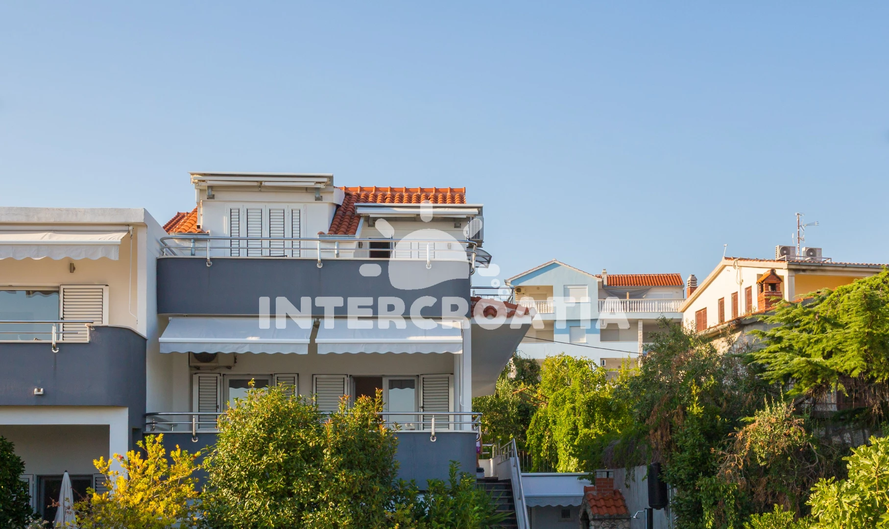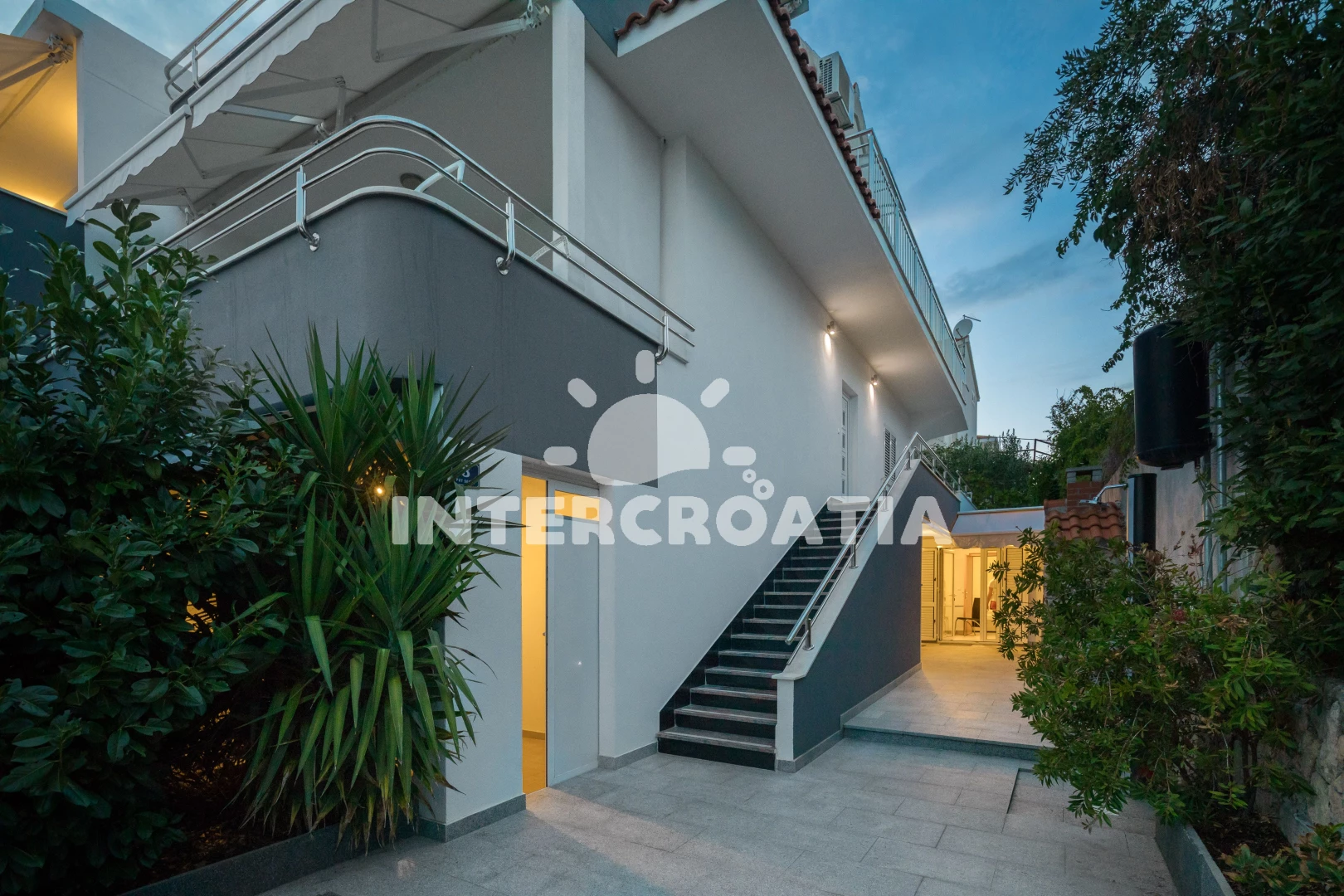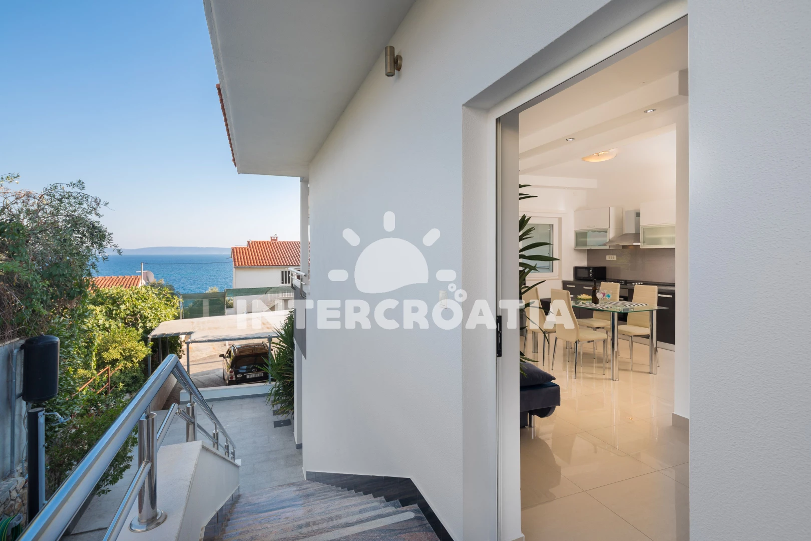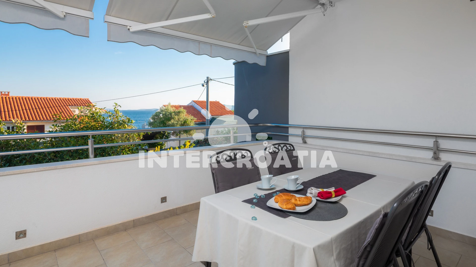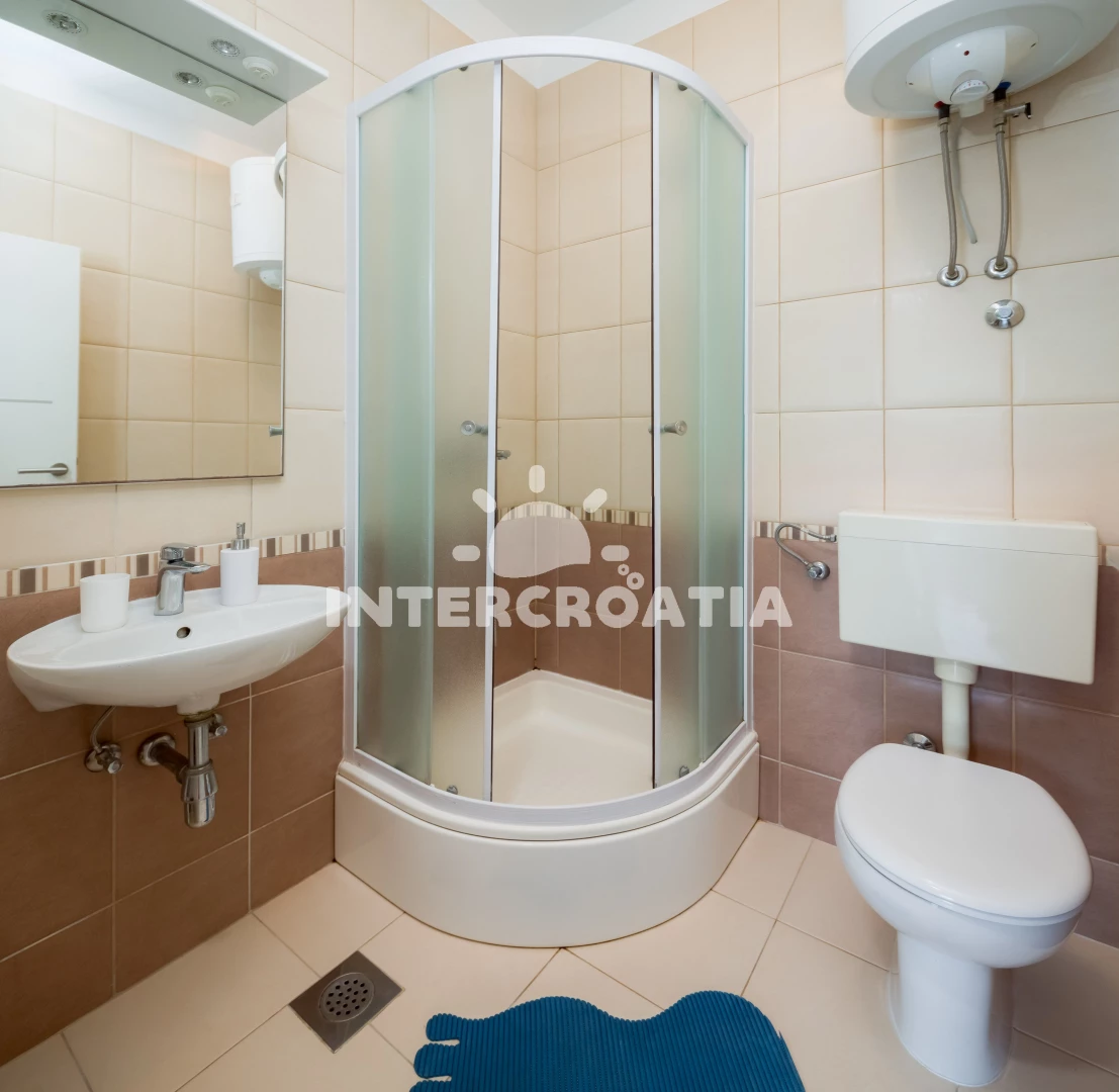 Vzdálenosti: Moře 40 m, pláž 60 m (kamenné a betonové desky), supermarket 300 m, centrum 400 m, restaurace 400 m, bar 400 m, půjčovna kol 500 m, diskotéka 500 m, mini golf 500 m, veřejná doprava 700 m, pošta 2,5 km, banka 2,5 km, ambulance 2,5 km, lékárna 2,5 km, čerpací stanice 3 km, trajekt (Trogir) 4 km, letiště (Split) 5 km,