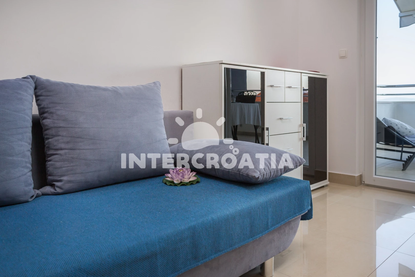 Apartmán se nachází 60 m od moře a pláže. Pláž je kamenné a betonové desky. U objektu je k dispozici společná zahrada s posezením a grilem.