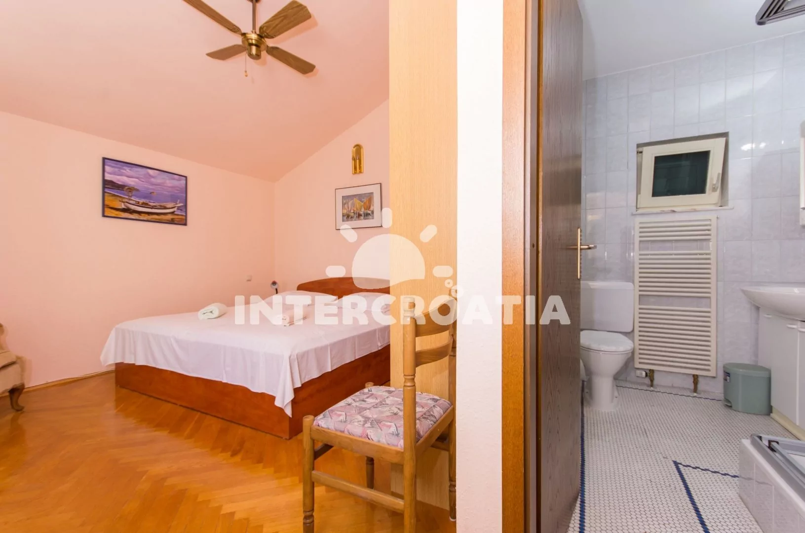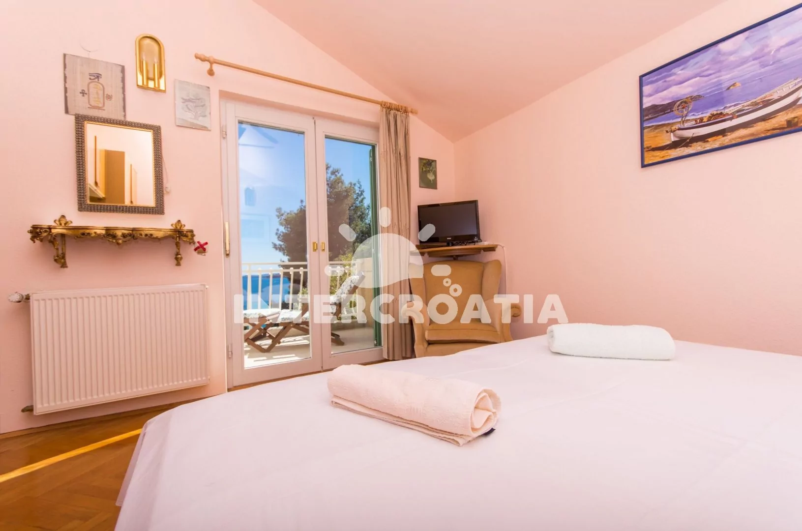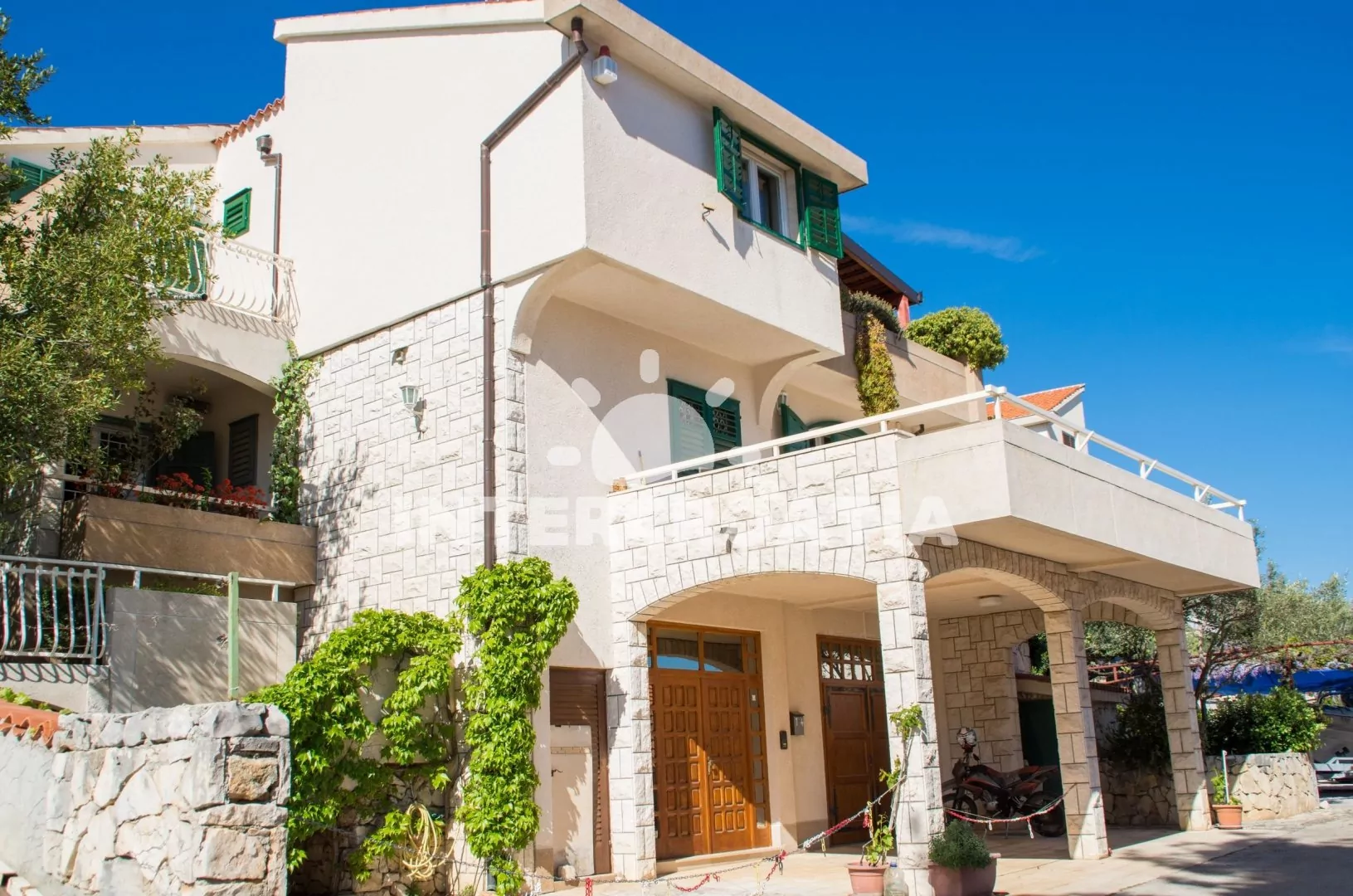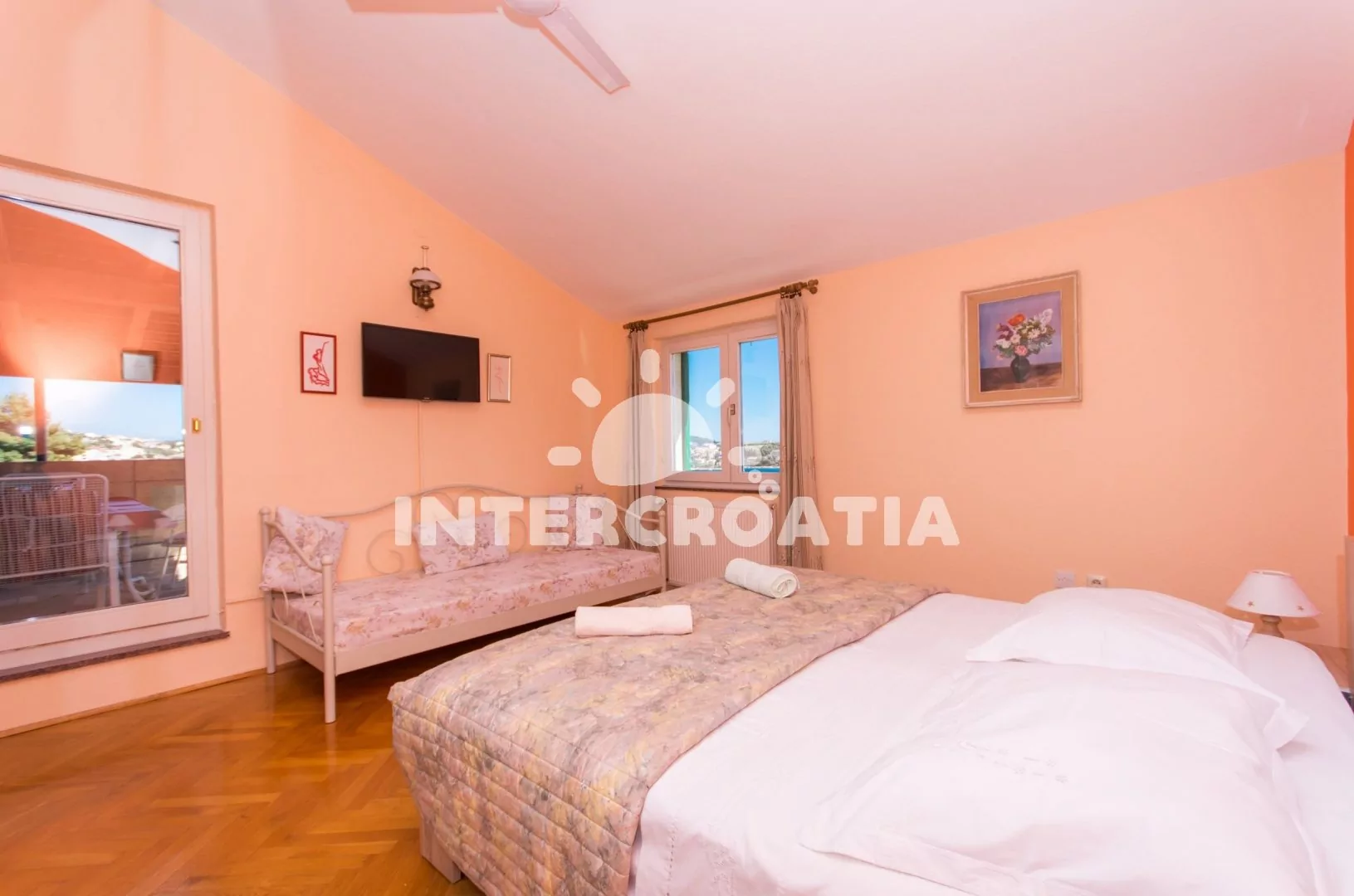 Třípodlažní apartmánový dům s terasou, pěkným výhledem na moře a krátkou pěší vzdáleností na pláž.