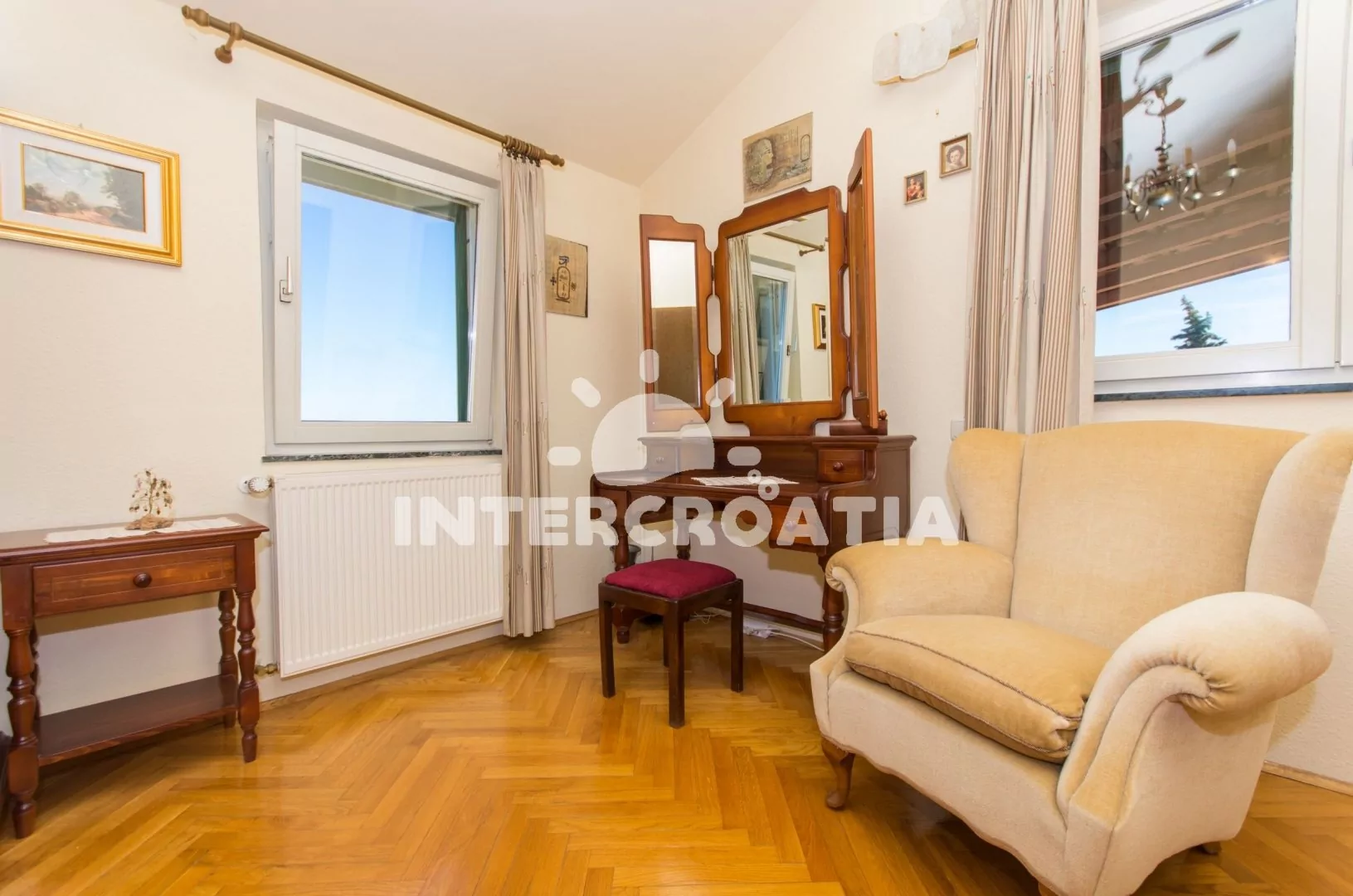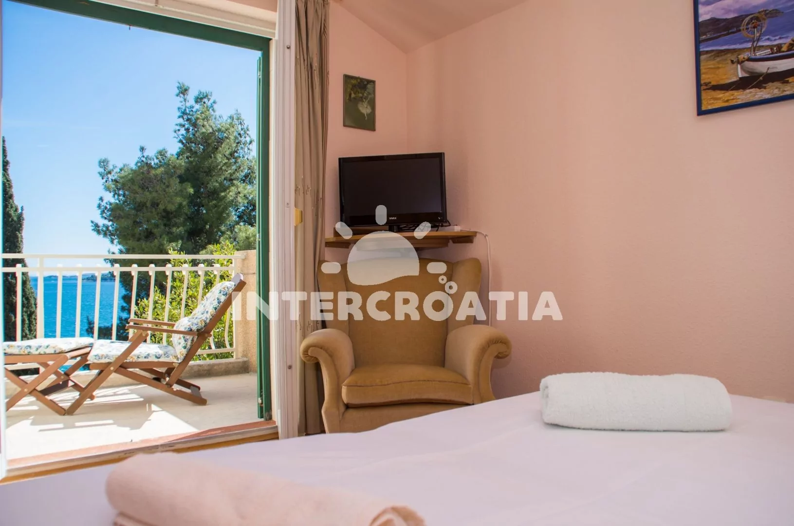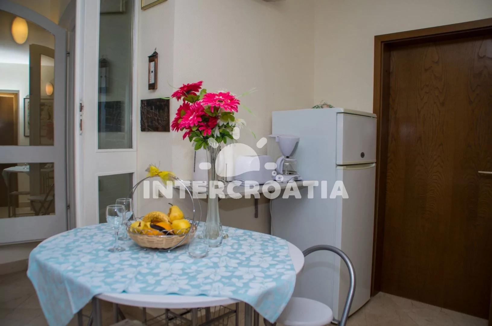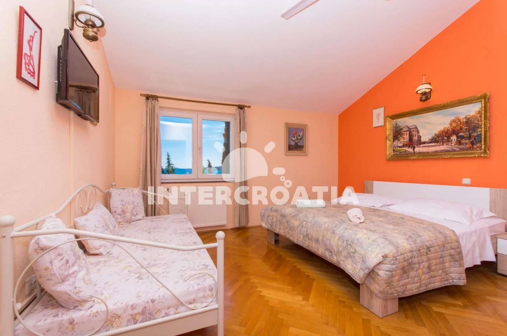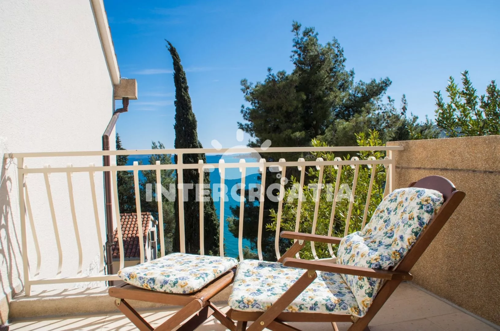 Třípodlažní apartmánový dům s terasou, pěkným výhledem na moře a krátkou pěší vzdáleností na pláž.