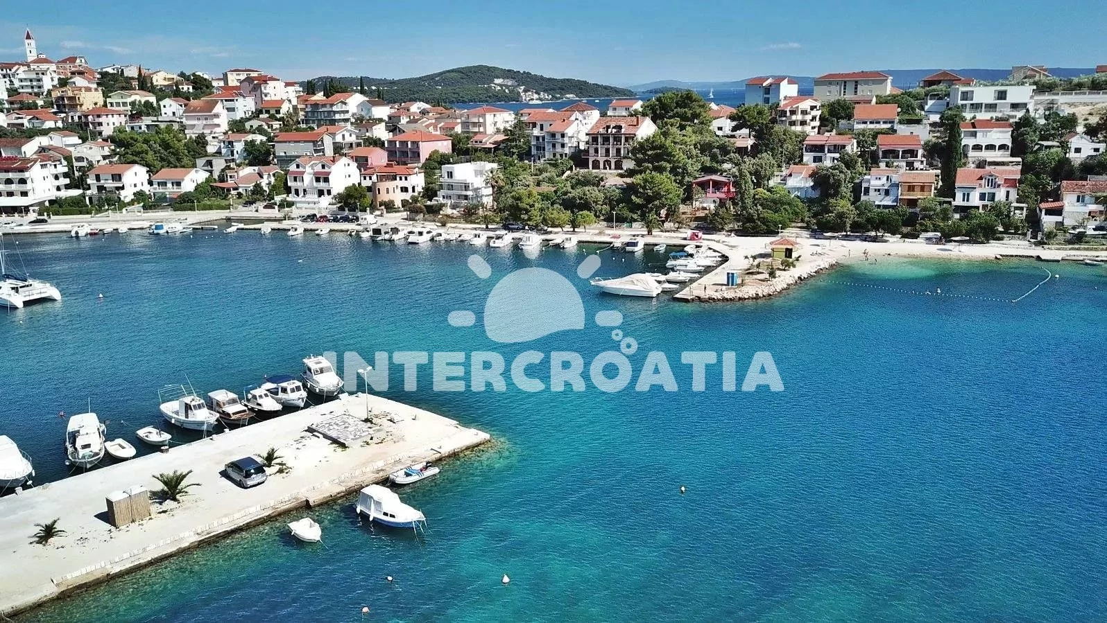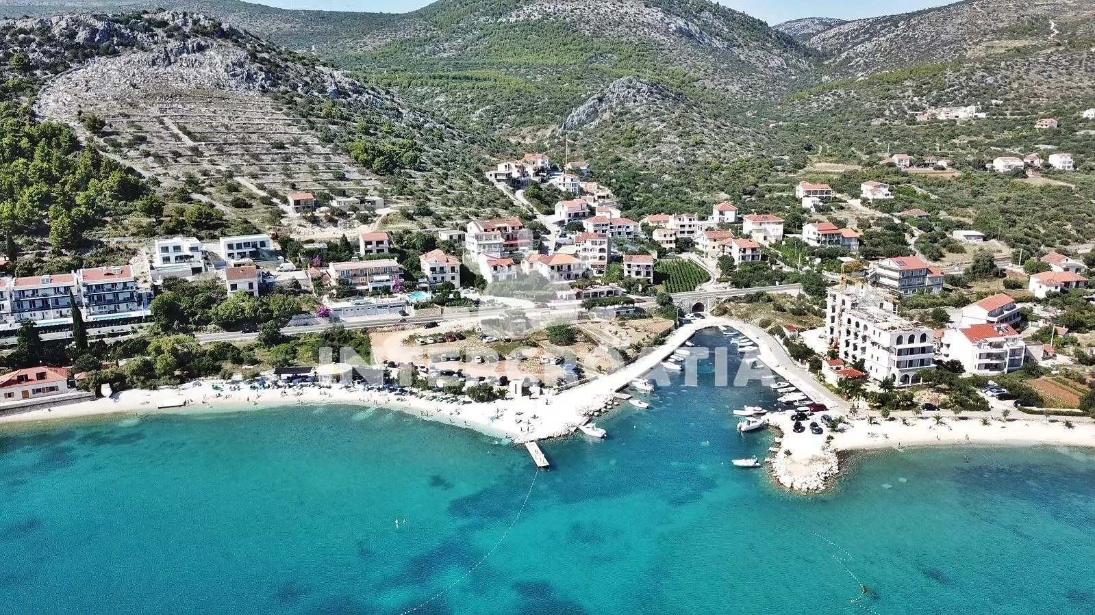 Ve Střední Dalmácii, 6,4 km na západ od přímořského lázeňského městečka Trogir a 24 km východně od malé rybářské osady Marina. Objekt leží 50 m pěšky od pláže.