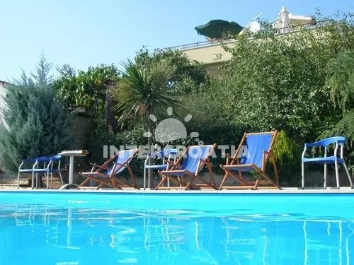 Apartmánová vila s venkovním bazénem se nachází 100 m od moře a do 500 m od oblázkové pláže. Zahrada s terasou, venkovním posezením a lehátky u bazénu. Dále je k dispozici zahradní kuchyň a zděný gril. Parkovací místa u vily pod přístřeškem.