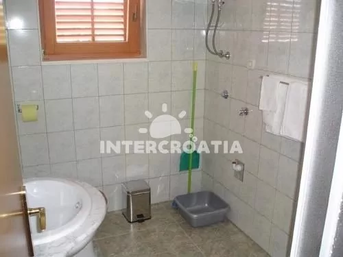 Apartmán (43 m2) s terasou, výhledem na moře a do zahrady se nachází ve 2. patře vily. Apartmán je vhodný pro 3 až 4 osoby. Obývací pokoj je spojený s kuchyní. Kuchyňská linka je vybavena varnou…