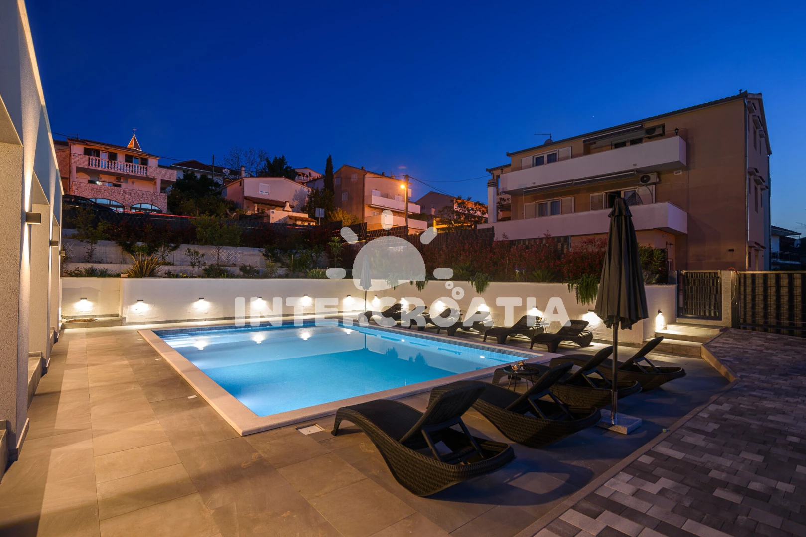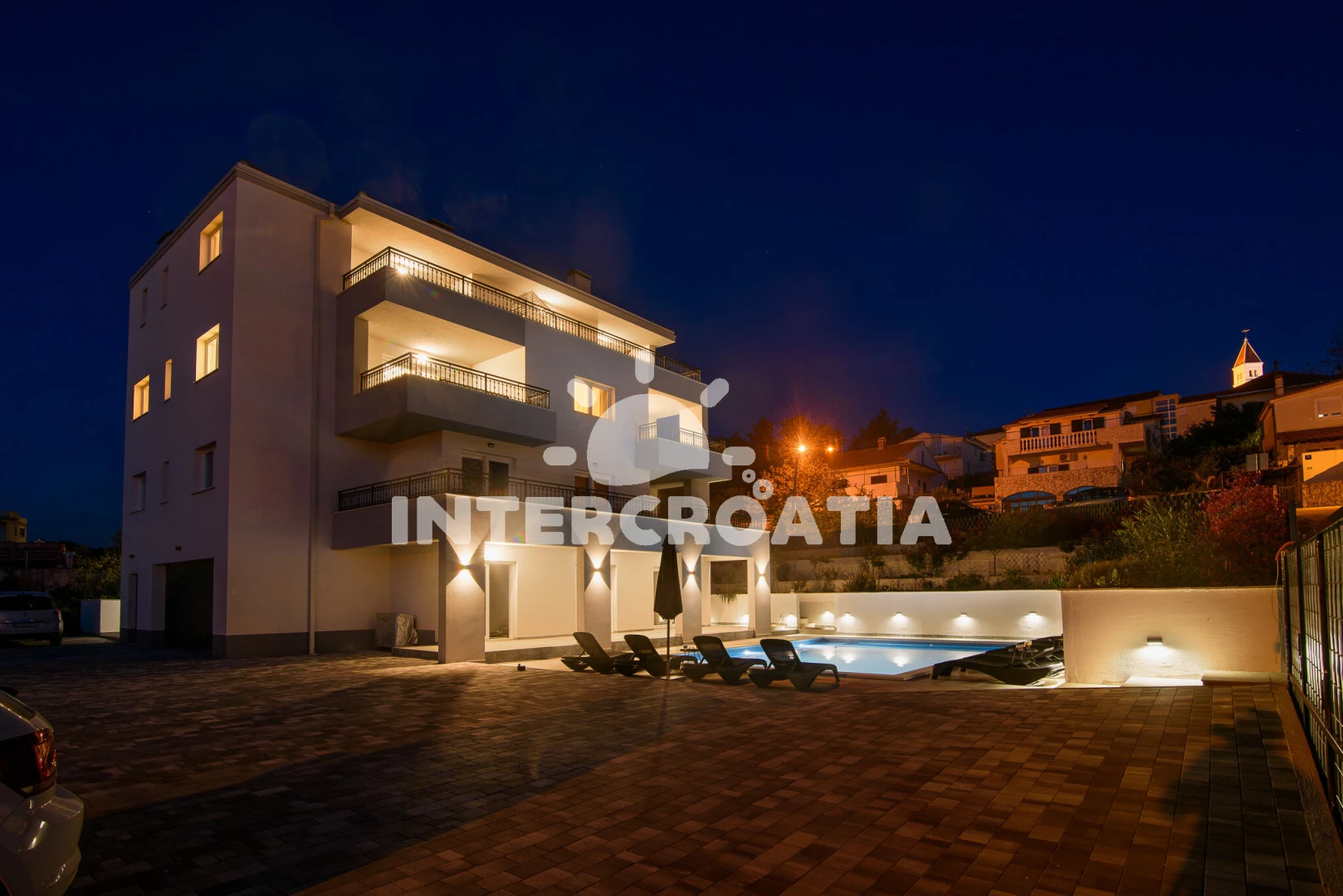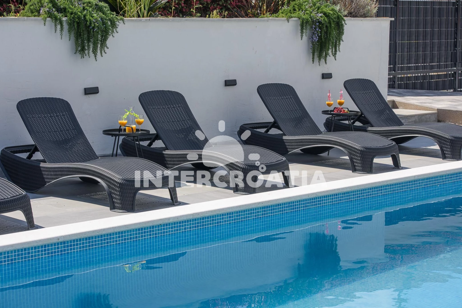 Luxusně zařízená a samostatně stojící apartmánová vila se nachází 6 minut pěší chůzí od moře a oblázkové pláže. Vila nabízí ubytování v klimatizovaných apartmánech s lodžiemi a venkovním posezením. K dispozici je bazén s ohřevem, lehátky a vlastní parkoviště pro automobily.