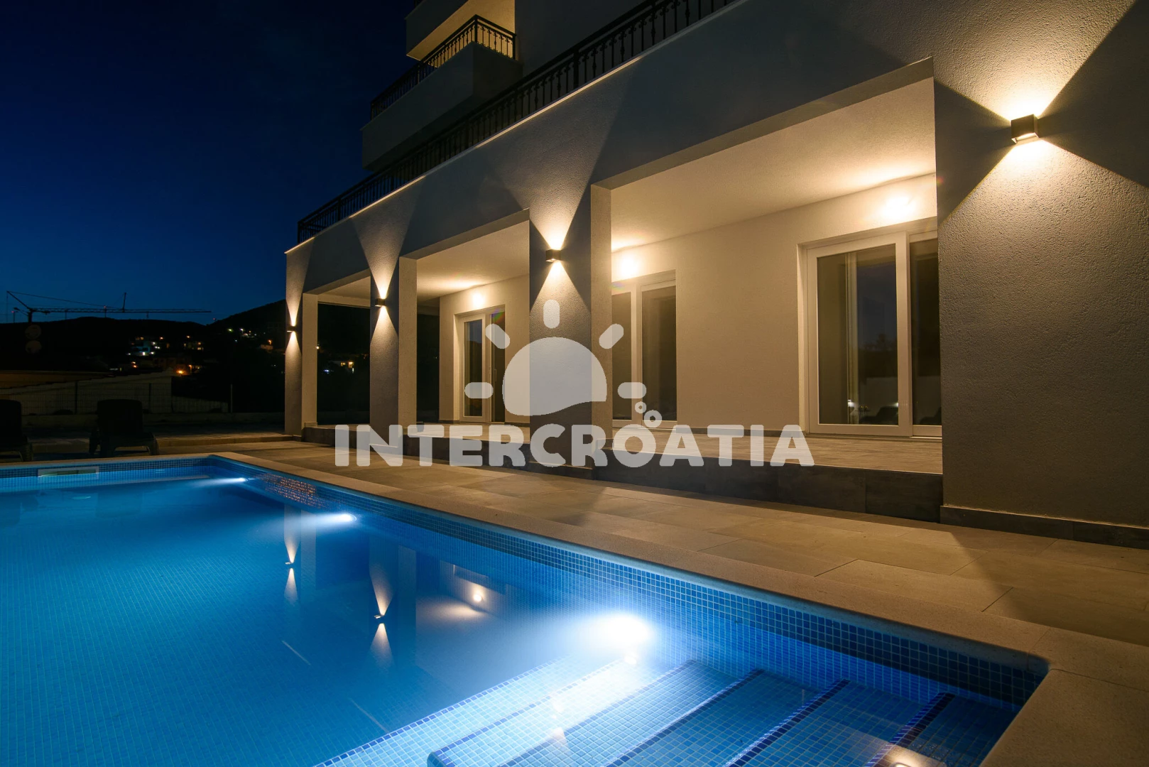 Vzdálenosti: Moře a oblázková pláž 450 m, obchod s potravinami, restaurace a bar 500 m, centrum 1 km, letiště (Split) 7 km.